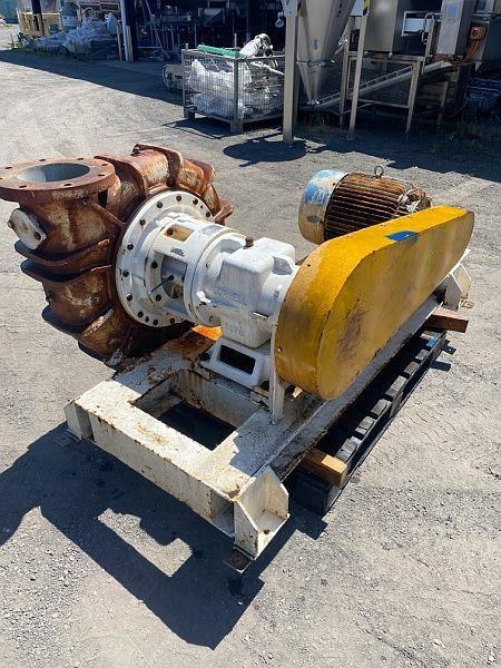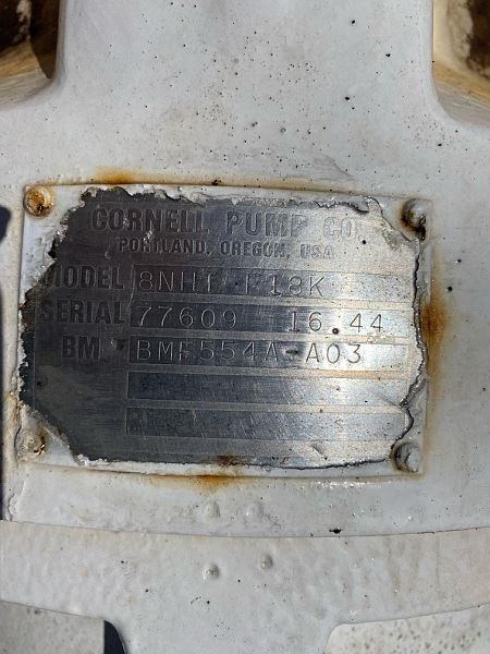 Cornell solids handling pump. Model 8NHT-F18K.(2 port impeller) 17.5 inch diam. Inlet 8 inch x Outlet 8 inch. Drive 18.5kw 4 pole 415v TECO electric motor. Pump speed 1200rpm. Pump can handle solids up to 4 inch. Capacity 4500gpm . Last used in Pineapple Processing plant.