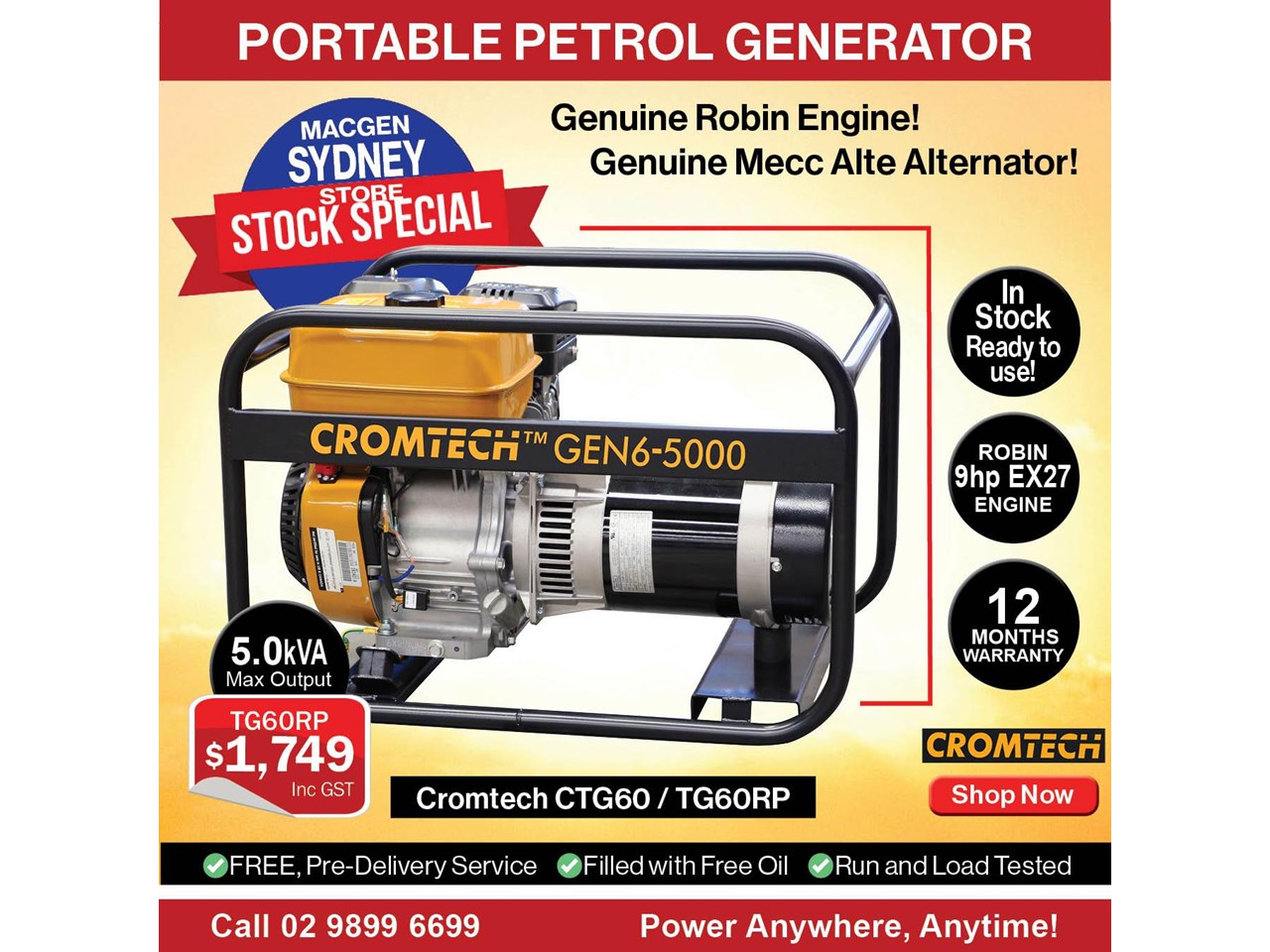 Title | MACFARLANE - 5.0kVA/kW Cromtech Recoil Start Generator |