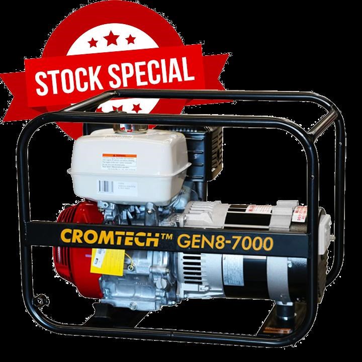 Cromtech GEN8-7000 Petrol Generator is a high-quality, simple, no-fuss unit designed for general-purpose use. Assembled and tested in the Cromtech Australian factory, this model is powered by a Honda GX390 engine. The low-maintenance Italian MeccAlte alternator is brushless and comes with overload protection.