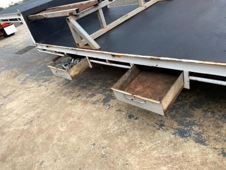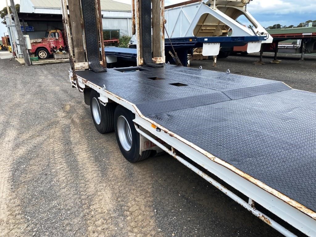 This is a saggy daggy little trailer, very light build, and would suit cars caravans or boats- it does tow well, you could use it as is, of give it back some positive camber if you wished! Certainly nothing flash, but would do a job, and where do you find a cheap little dropdeck? $17000+ GST = $19700 Inc GST