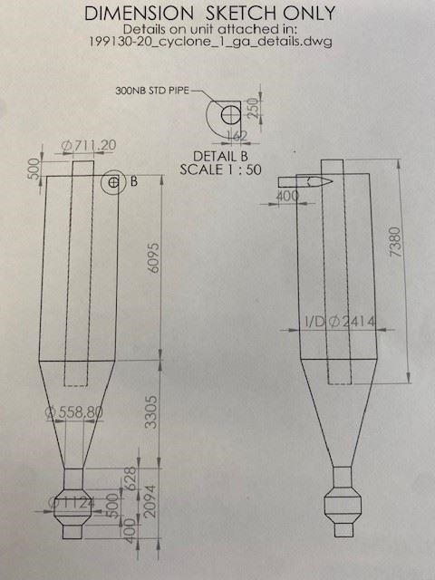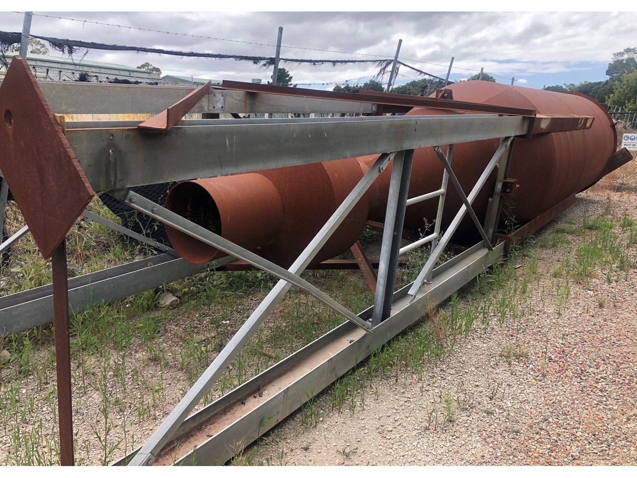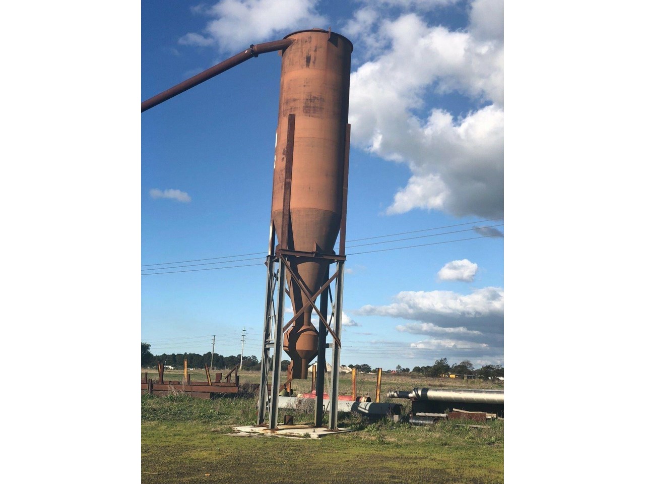 Large cyclone/silo. Cyclone has a steep cone and is mounted on legs. It was built for a specific purpose but never used. Some surface rust. Main Body