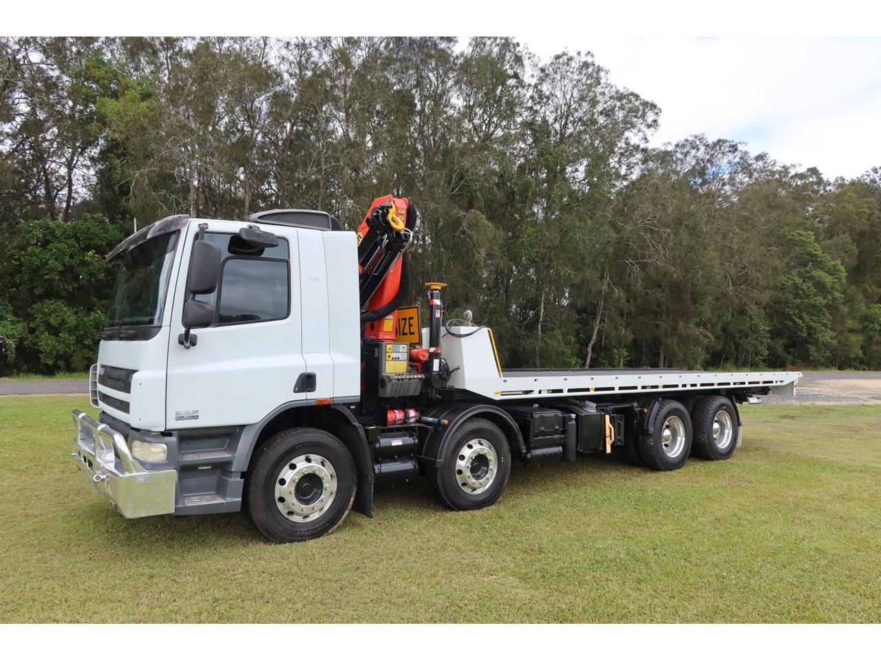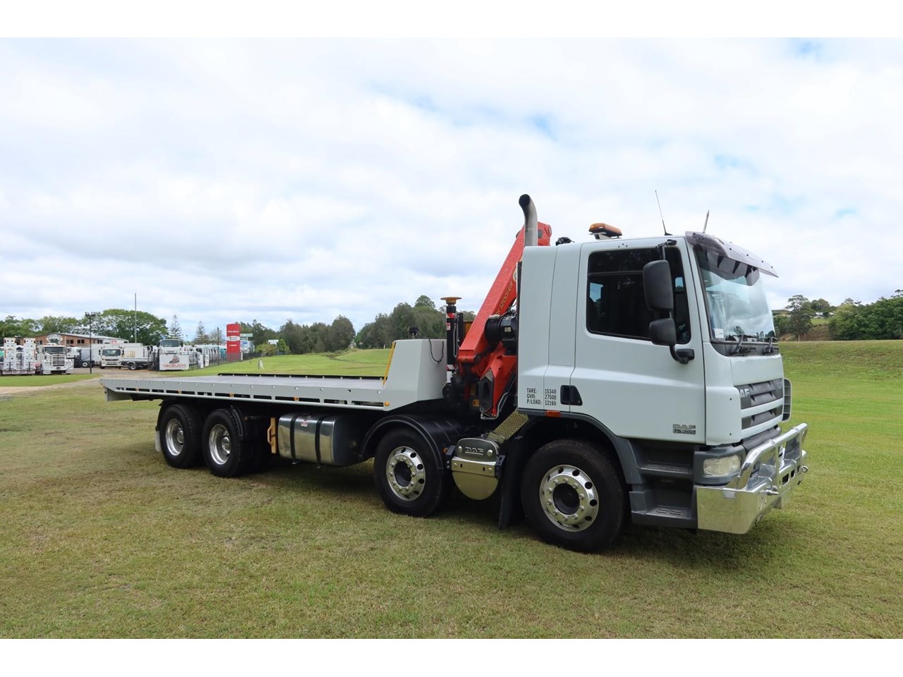 1 x only used 08 / 2012 DAF CF 75.360 Auto 8x4 on airbag rear suspension turbo / intercooled, 360hp, 12 speed AUTO inc air conditioning, windscreen sun-visor and an alloy bullbar.