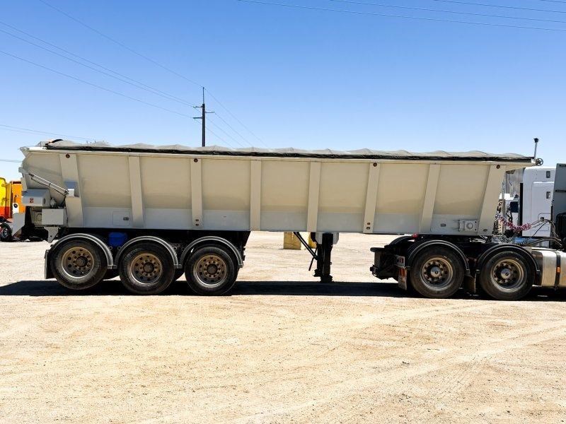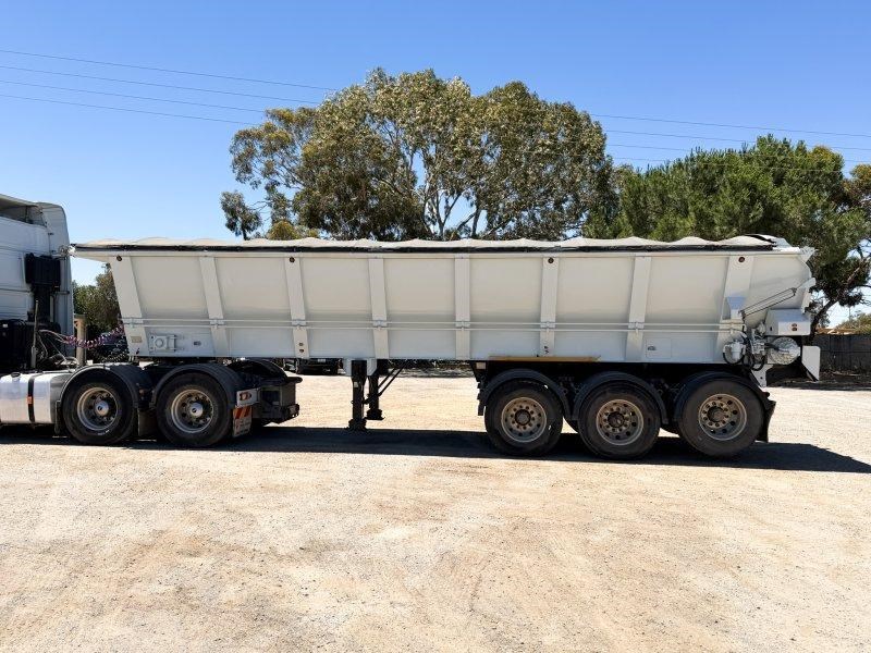 2016 AMS Live Bottom Tri-Axle Trailer, 10 Stud Wheels, Henderickson Axles on Henderickson Air Bag Suspension, Automatic Lift Up Rear Axle, Razor Electric Hoop Type Tarp,