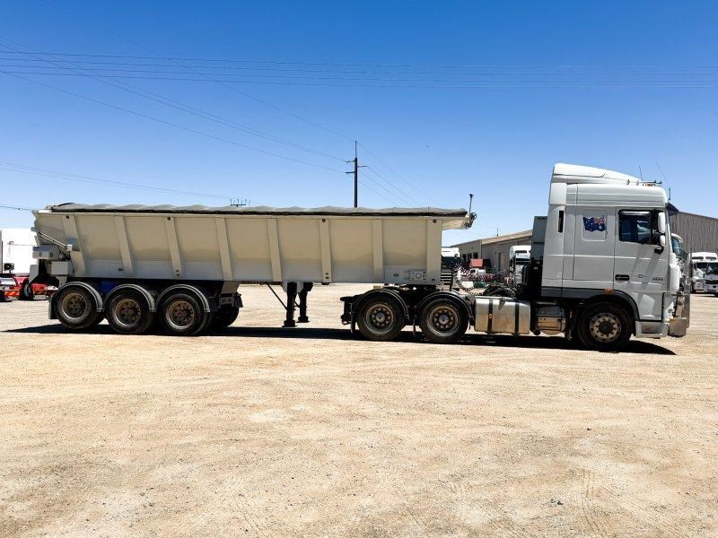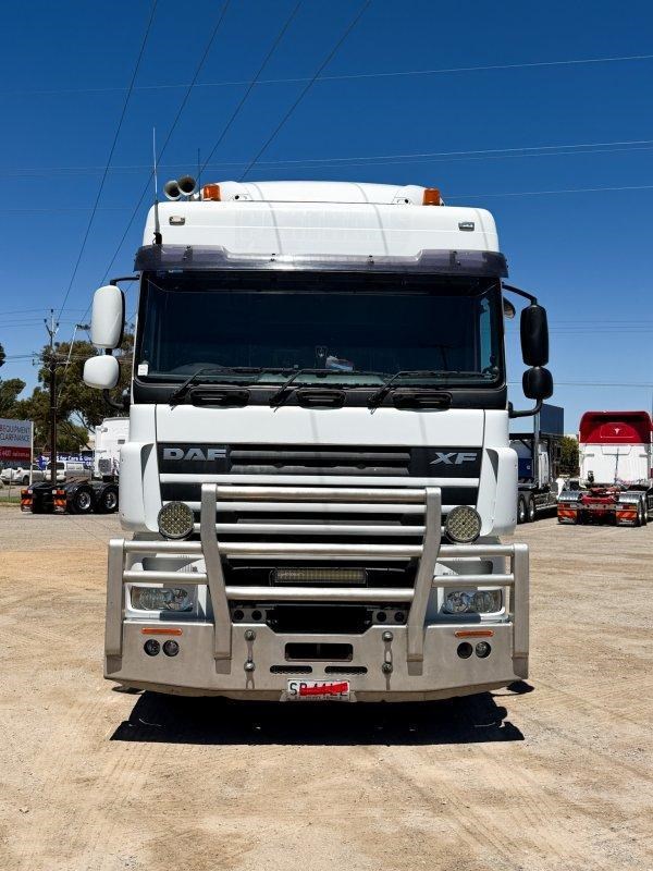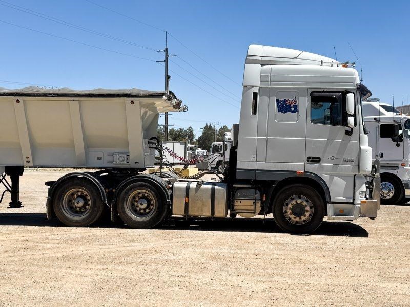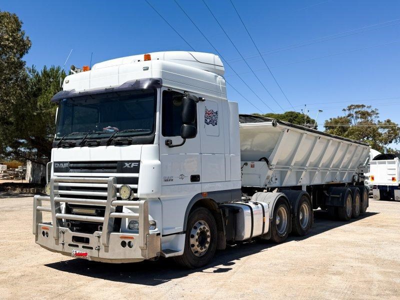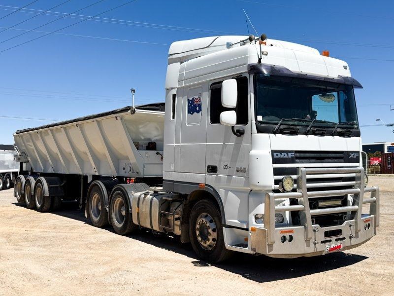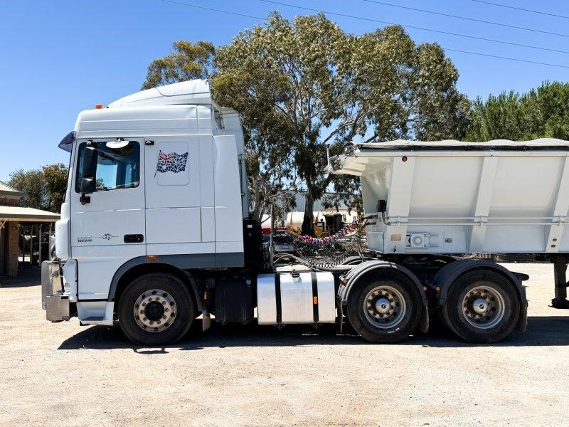 2015 Daf XF105 510 6x4 Prime Mover, 510Hp Paccar Engine, AMT Transmission, Air Bag Suspension, Alloy Bull Bar, Chassis Deck Plate, Plastic Drive Guards, Alloy Bull Bar with Tow Pin and LED Spot Lights, Sun Visor, Aero Kit and Wings, 10 Stud Wheels, Rotating Lights Mounted on Roof, Square Tanks, Right Weigh Scale, Ball Race QRTT, Air Ride Drivers Seat, Double Bunk, UHF, IcePack.