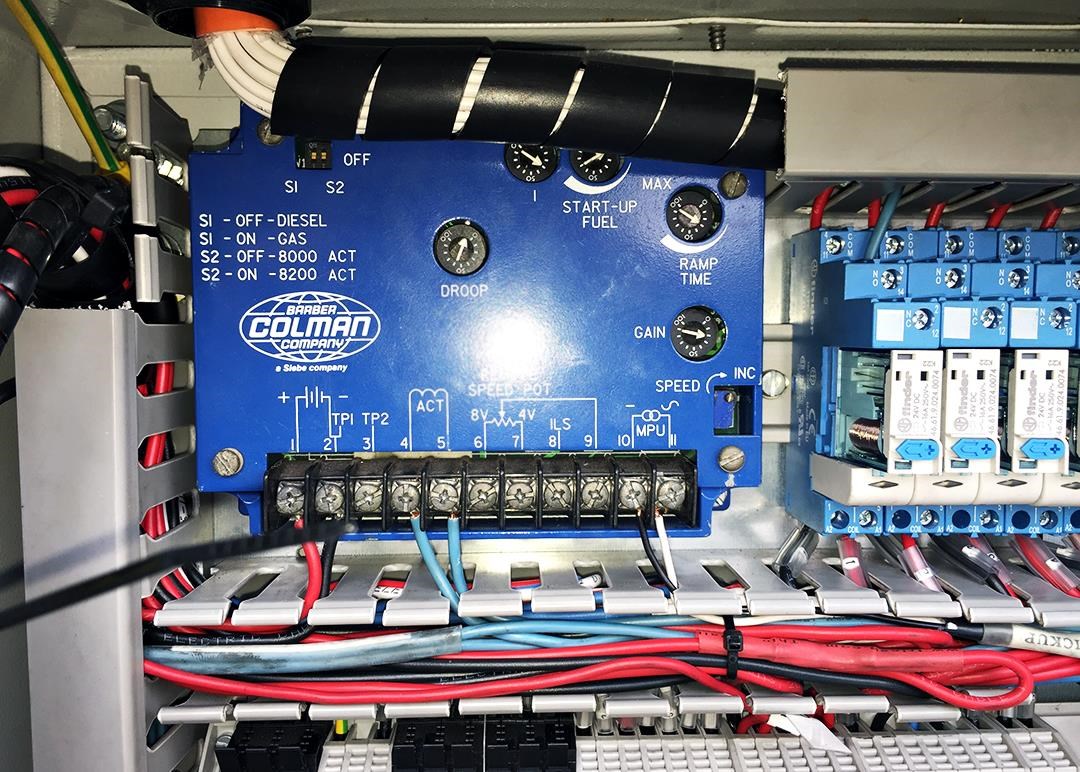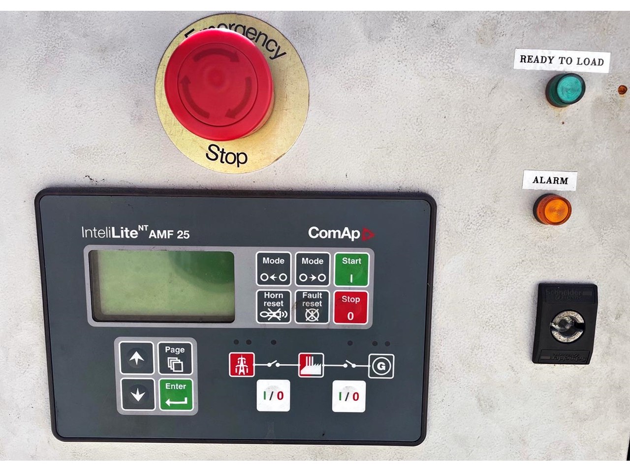 Control panel shows oil pressure, coolant temp, Volts, Amps, Hz, RPM & Hours run