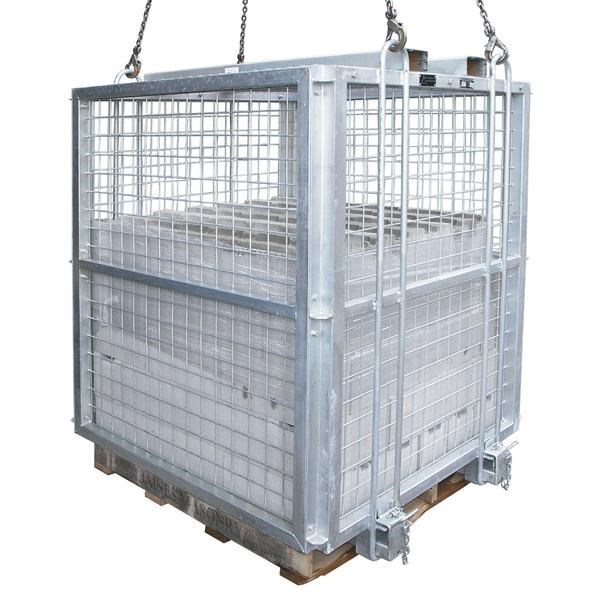 The DHE-CBC6 Brick Cage is designed to convey palleted bricks or similar loose goods safely to a work location via forklift or overhead crane.