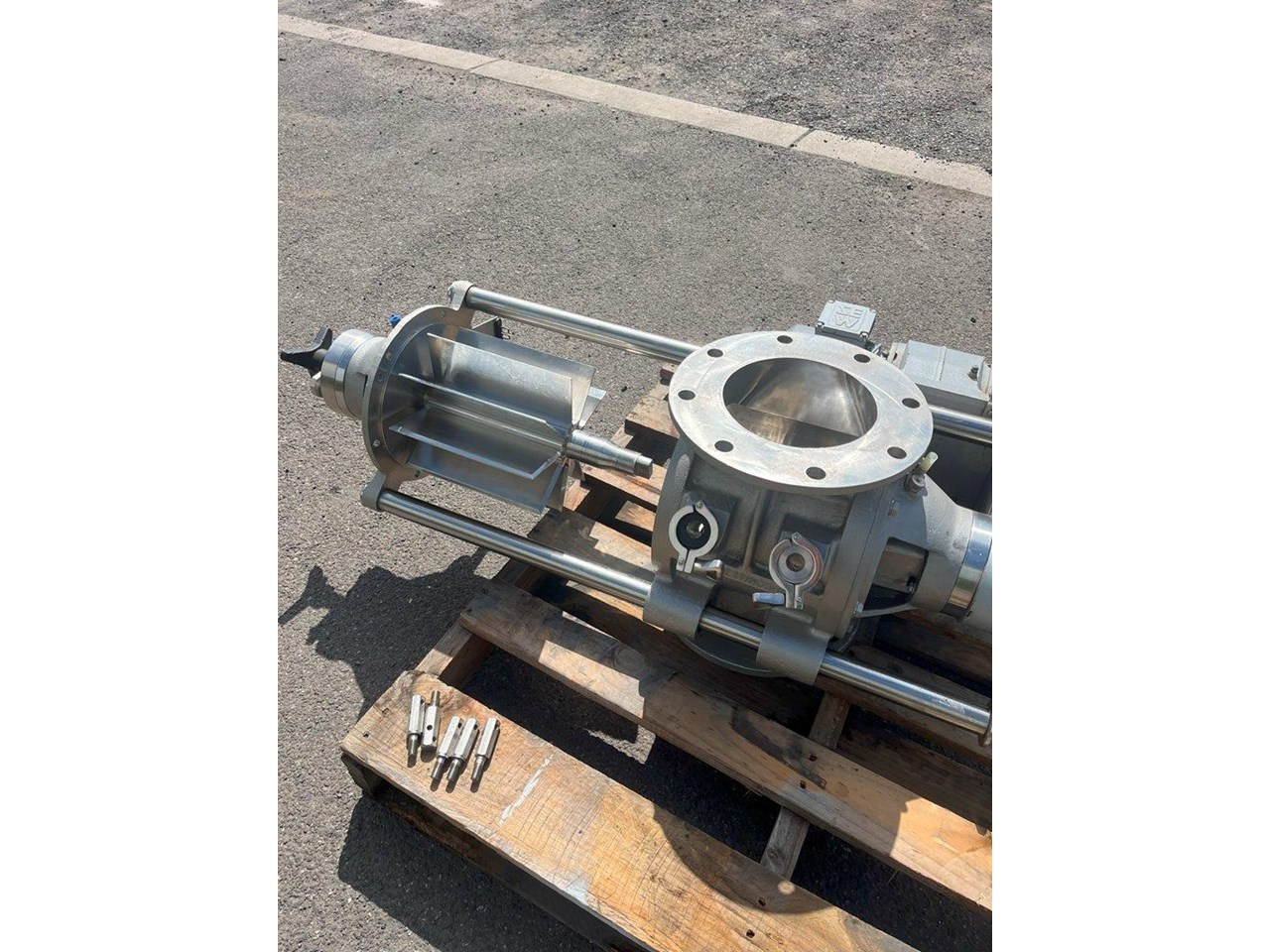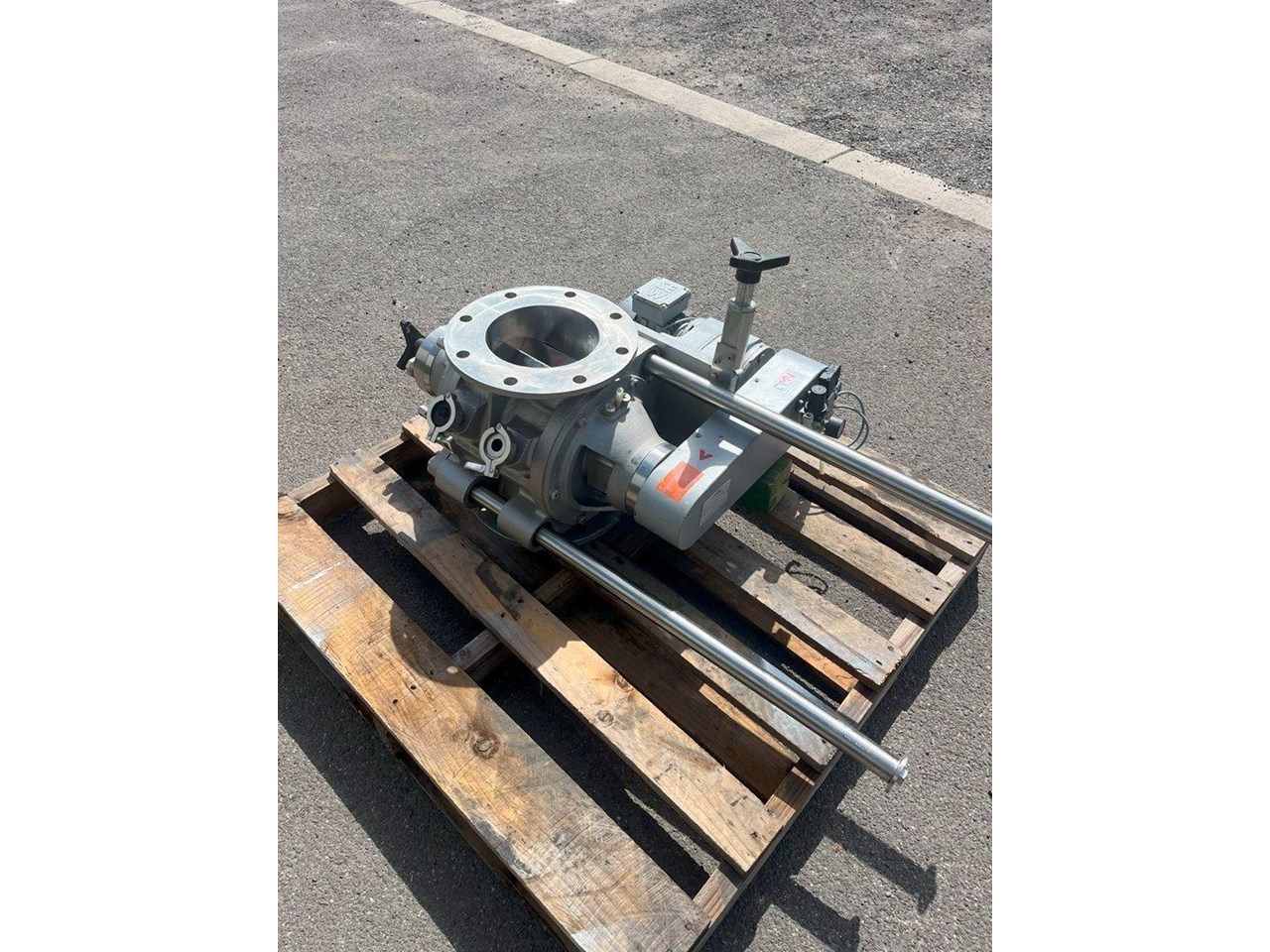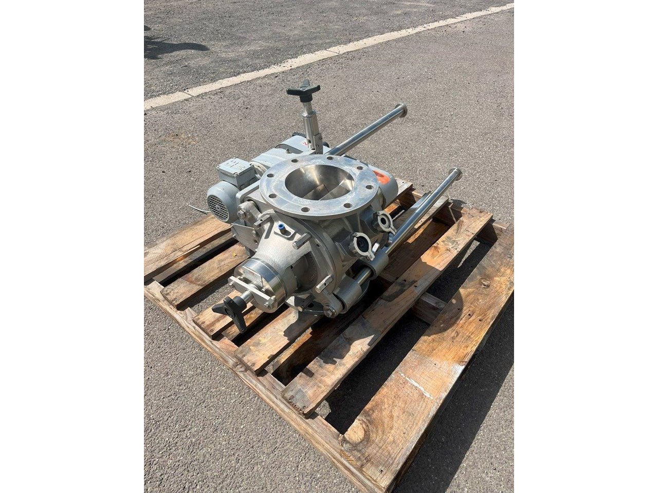316 Stainless steel rotary valve with removable rotor. Make: DMN Westinghouse Model: AL 200 DMZC RPM:15 Power: 3 Phase 415V 0.37kW Capacity: 10.5 LTR/REV at 100% Filling capacity Inlet and Outlet flange openings are 8