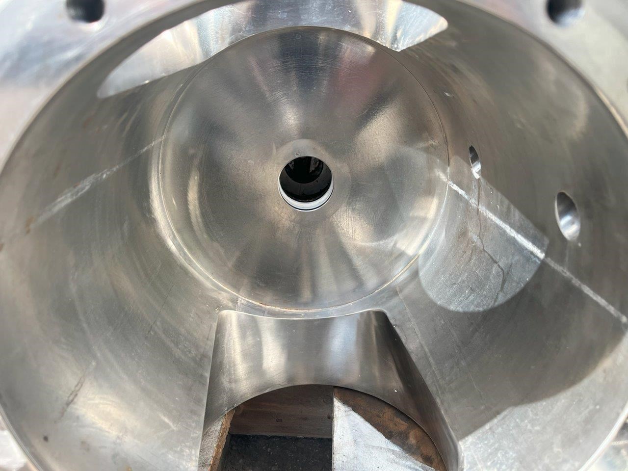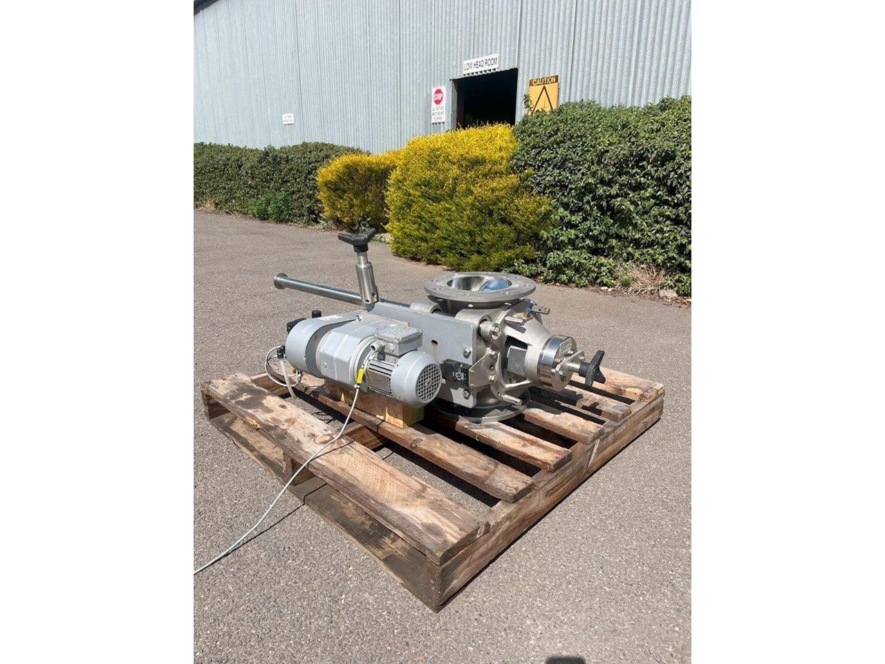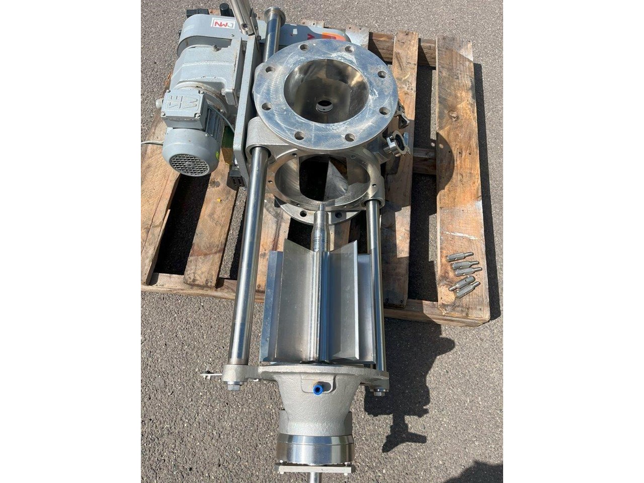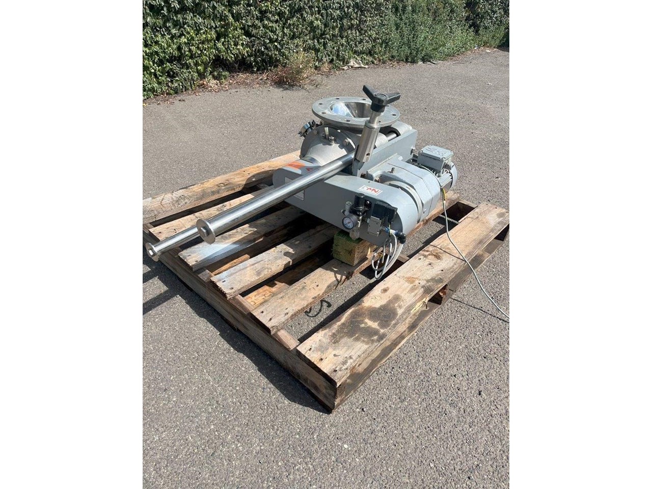 316 Stainless steel rotary valve with removable rotor. Make: DMN Westinghouse Model: AL 200 DMZC RPM:15 Power: 3 Phase 415V 0.37kW Capacity: 10.5 LTR/REV at 100% Filling capacity Inlet and Outlet flange openings are 8