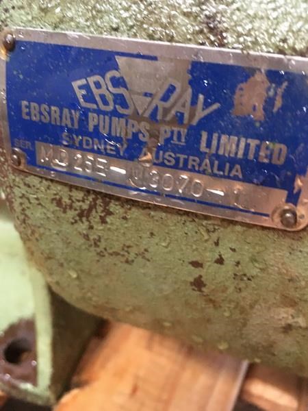 Ebsray Internal Gear Pumps - Bare Shaft Size: Inlet /Outlet 65mm x 65mm. (2 1/2 inch) Model MD 25E. Capacity 500l/min at 460rpm, Max 11kw, 100psi. No motor currently fitted