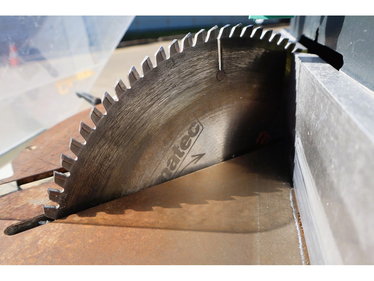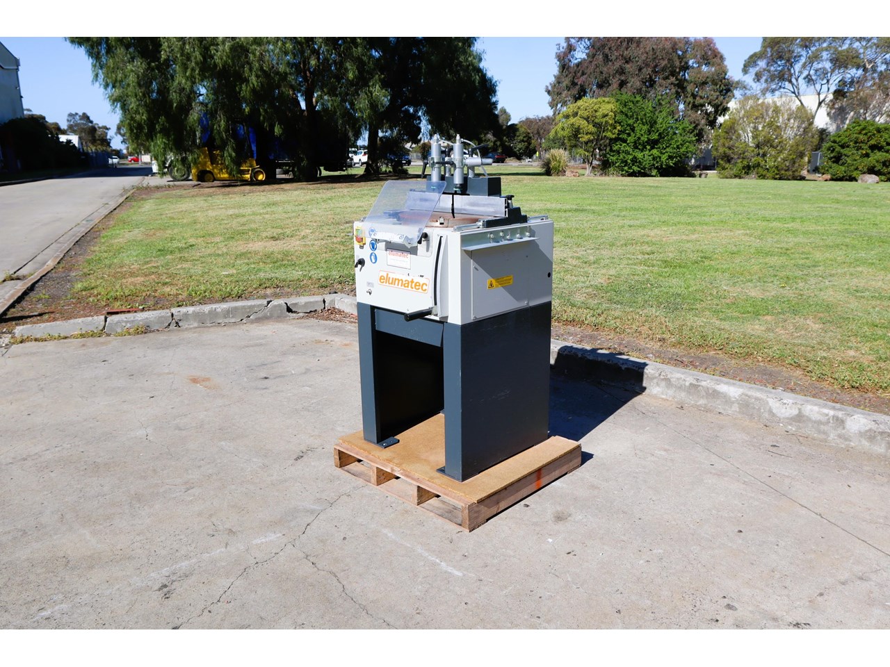 German engineered Elumatec precision table saw designed for cutting aluminium and non-ferrous profiles with accuracy and reliability. This compact and robust model features a 280 mm saw blade driven by a 1.1 kW motor operating at 4100 rpm, ensuring smooth, clean cuts every time.
