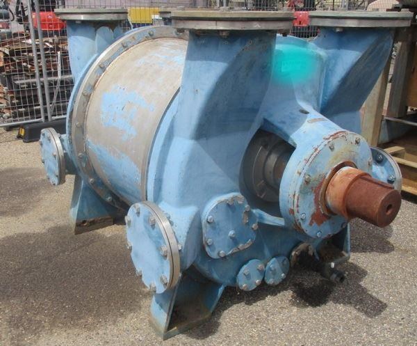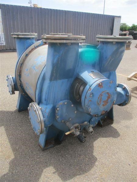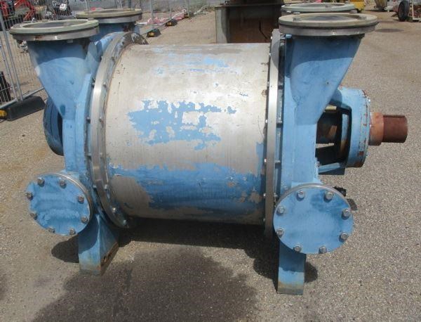 Emptivac 2007 Stainless Steel Liquid Ring Vacuum pump. Model N2BE/HV300-8000. Suction capacity Max 7500M3/hr 490rpm. Suction pressure. 200 to 1000mbar Abs. See Curve for KW rating 90-150kw. Inlet/outlet 12inch Currently filled with preserving oil and in good condition. Pump turns freely. Clockwise rotation.