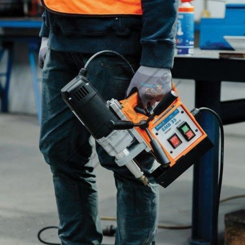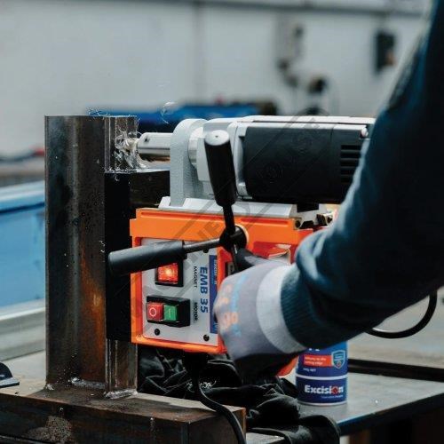 The Excision EMB-35 magnetic based drill is the machine for the efficient drilling of holes under 35mm. Weighing only 10.6kg, this German made drill is durable for any small engineering application. The direct Weldon arbor type spindle is capable of handling all 19mm shank core drills.