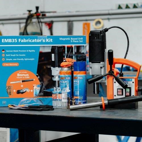 EMB-35 Portable Magnetic Drill - FABRICATORS KIT 9 Piece Set Ø35mm Drill Capacity - Manual Feed