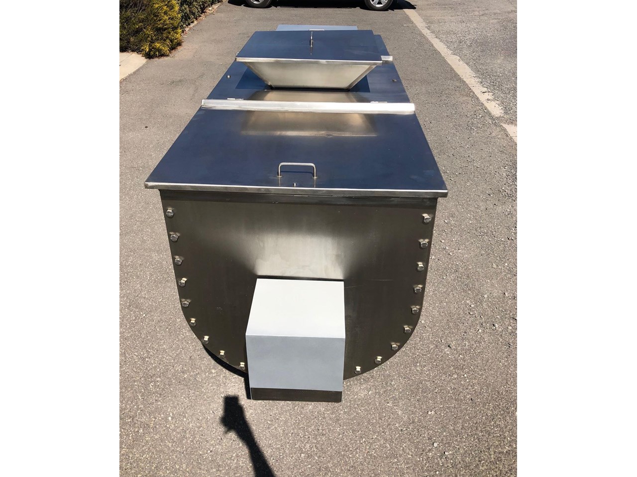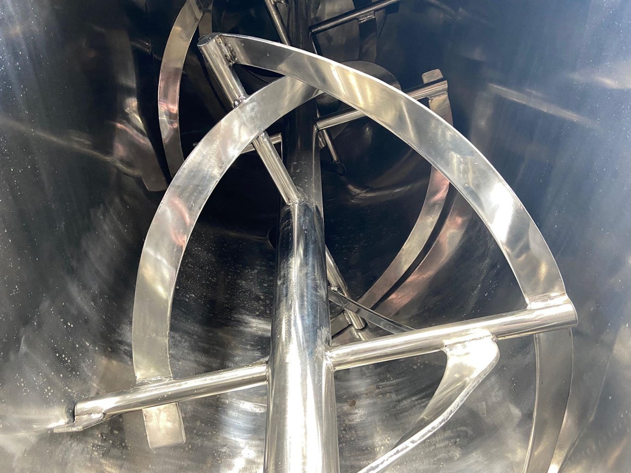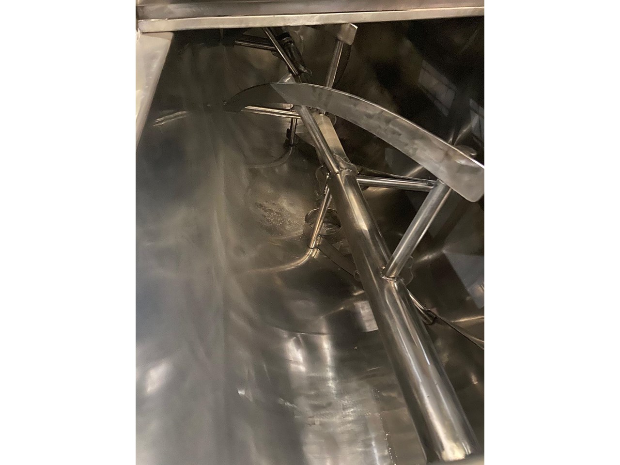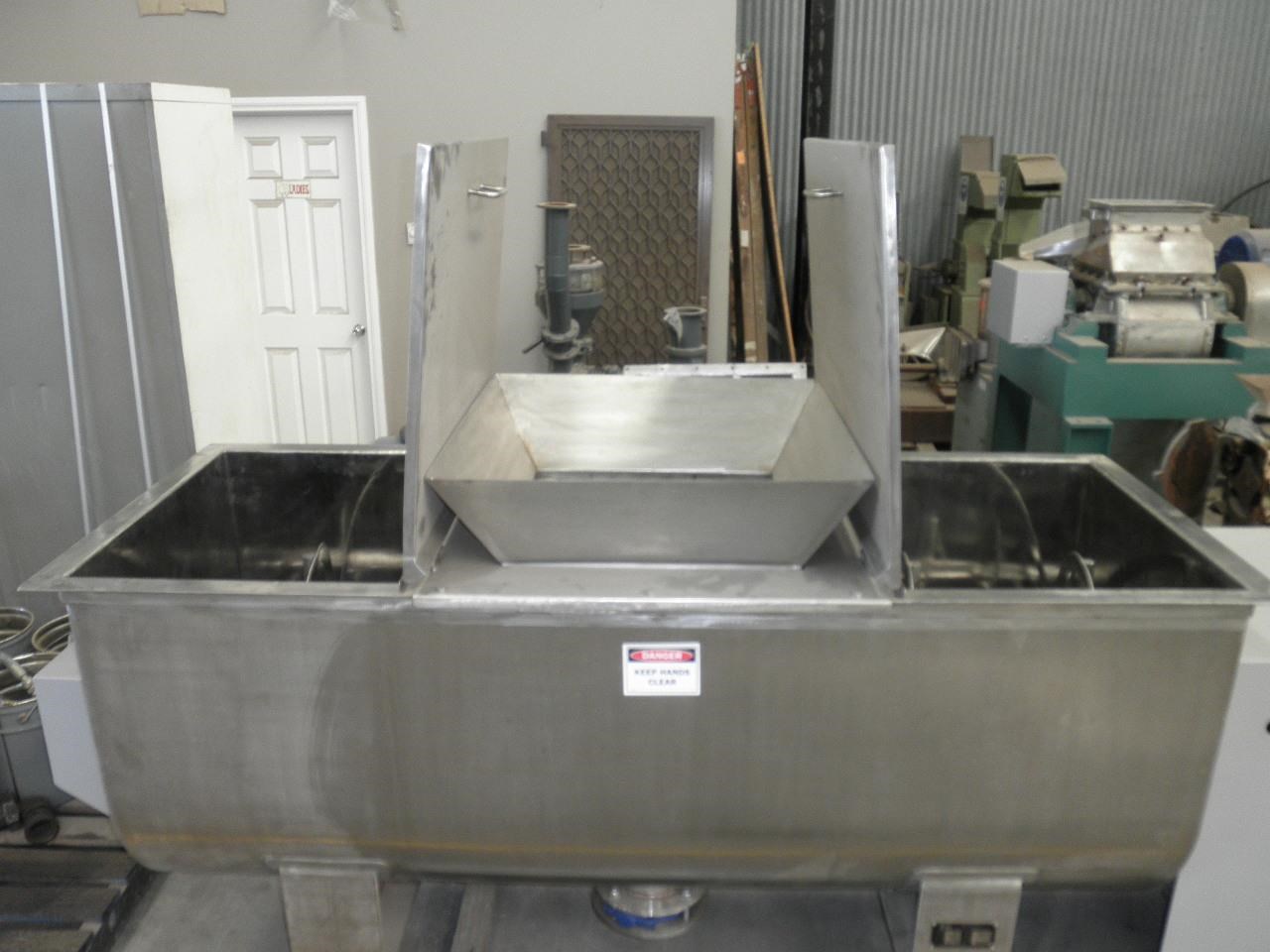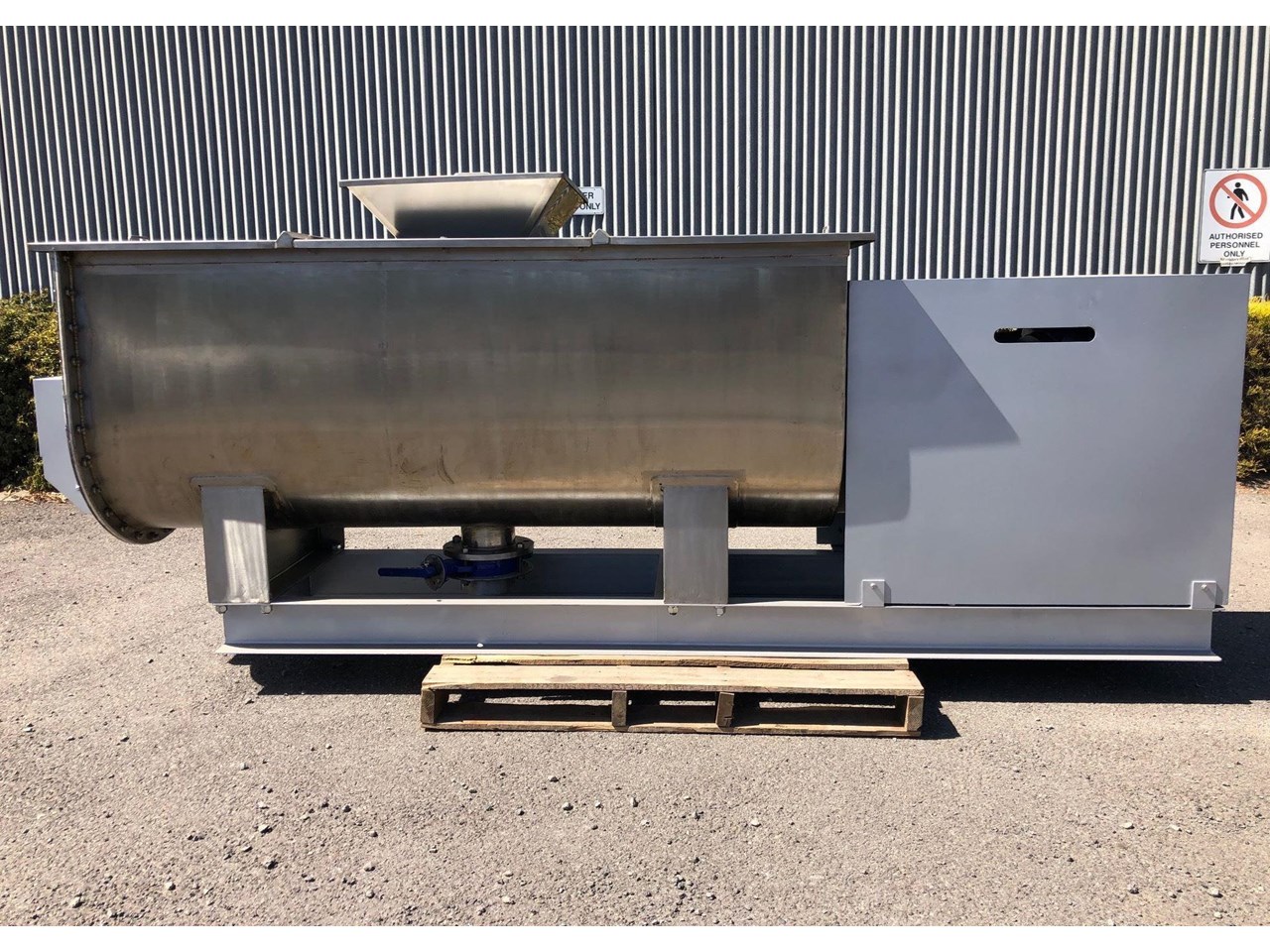 NEW - 1000L Stainless steel ribbon blender. This unit is great for blending dry powders and even slurries. They blend in a cross flow method by moving product in both directions at the same time. Product is fed in the top through a loading hopper, mixed and then discharged out the center bottom outlet. We keep these machines simple and well made to keep the price down. You wont find a more reasonably priced new Stainless steel ribbon blender than you will for one of ours. We have these in stock and they can be inspected at our factory in Melbourne. - Stainless Steel 1000L Ribbon Blender. - Double helix ribbon. - Flanged center outlet. - Complete with 7.5kw(415V) drive and gearbox, provides a final drive speed of 22rpm. Blender is supplied with motor and gearbox fitted but no electrical controls. Ideal for mixing powders and granules. Packed gland seals at either end of the shaft and the centre bottom outlet is fitted with a butterfly valve. Overall dimensions: 3.3m long x 850mm wide x 1350mm high.