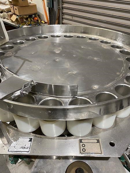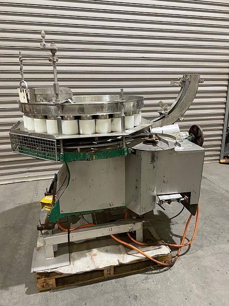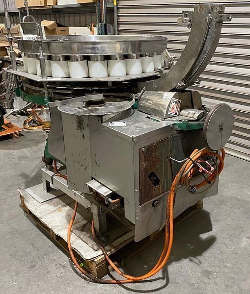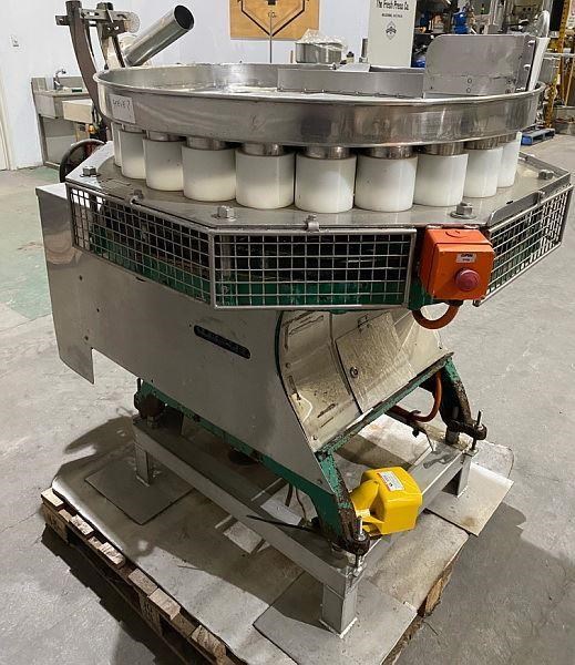 FMC 25 Pocket Filler. (Metal cans) Gravity feed for Cans. 95 mm diam x 110mm length. 450gram. Out feed disk discharge. Capacity up to 300 Cans per min. Last used on pineapple.