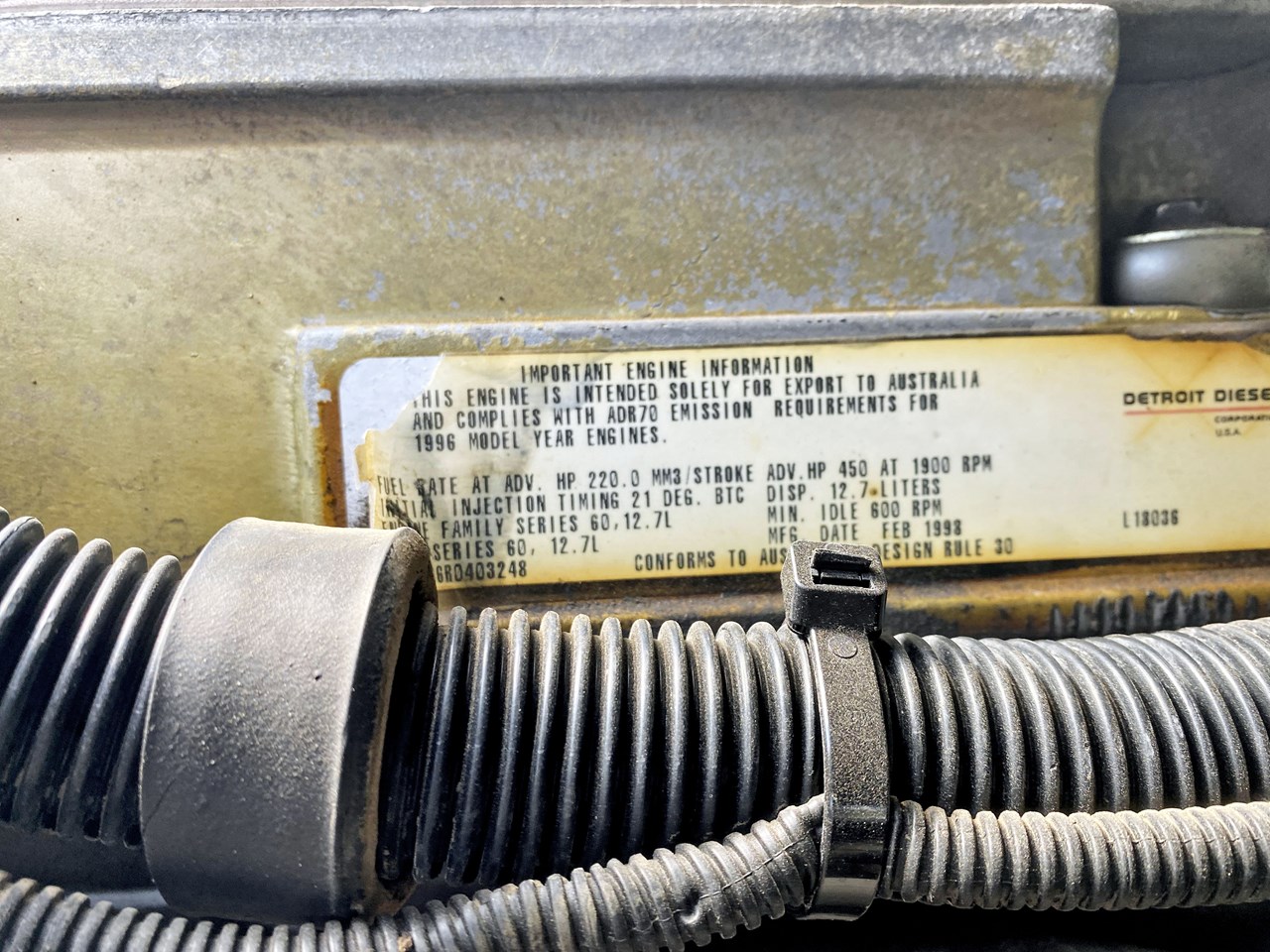 Good motor Detroit series 60. 12.7 L good gear box 18 speed Eaton Fuller Road Ranger good diffs. Everything works well including aircon and lights. Great parts truck no rego not roadworthy.