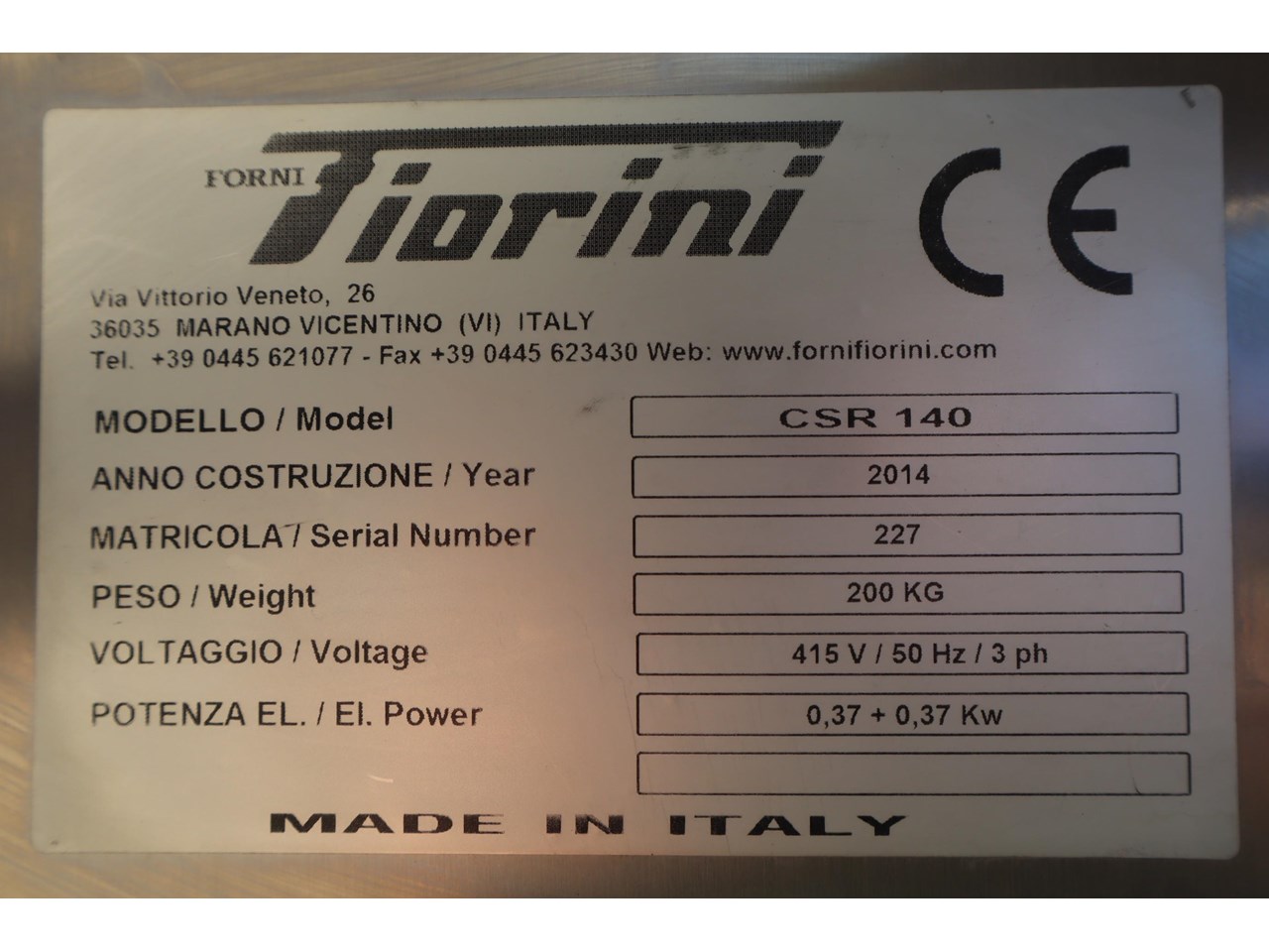 | Make | FORNI FIORINI |