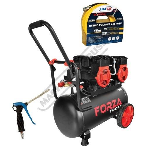 FORZA TOOLS FT2236040 OIL-LESS AIR COMPRESSOR BUNDLE 40L Tank / Twin 2 HP motors BONUS HOSE REEL AND AIR GUN