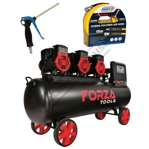 FORZA TOOLS FT23540120 OIL-LESS AIR COMPRESSOR BUNDLE 120L Tank / Triple 1.5 Hp motors BONUS HOSE REEL AND AIR GUN