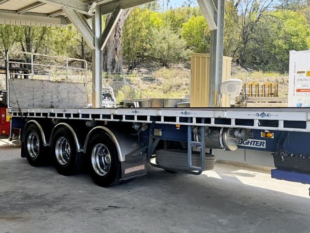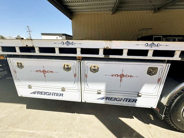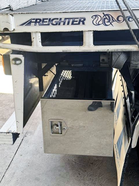 2002 Freighter Flat top trailer. Chrome mudguards, cleanskin tyres, spider hubs with chrome rims. 90% brake remain. Set of carkeet gates, binder winder and water tank.