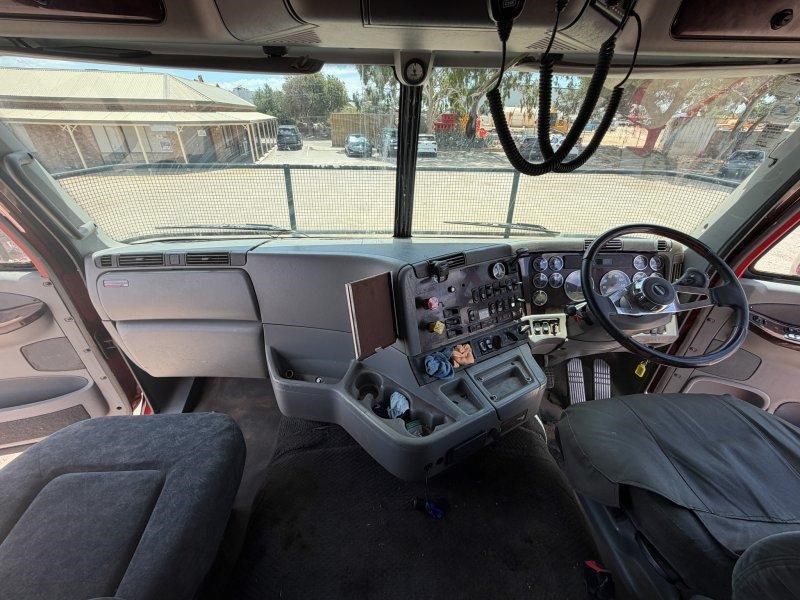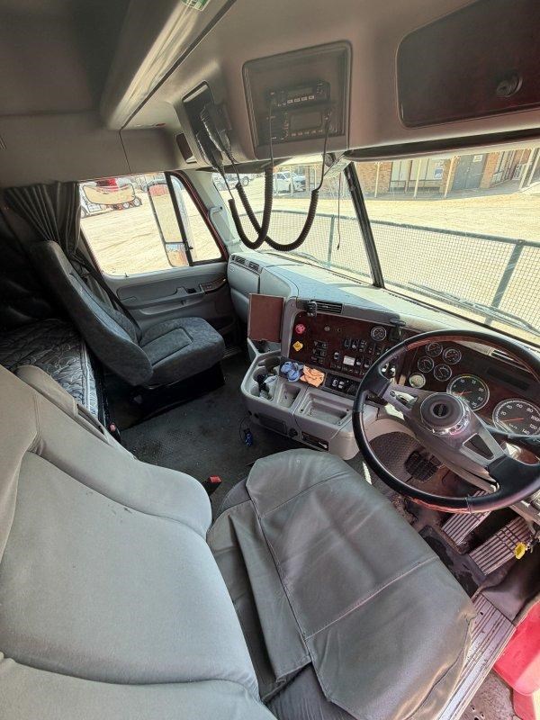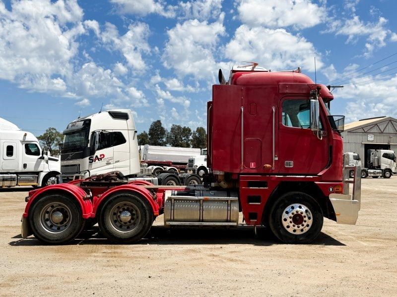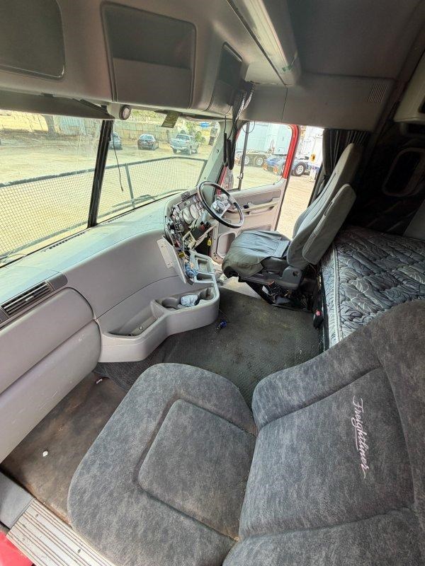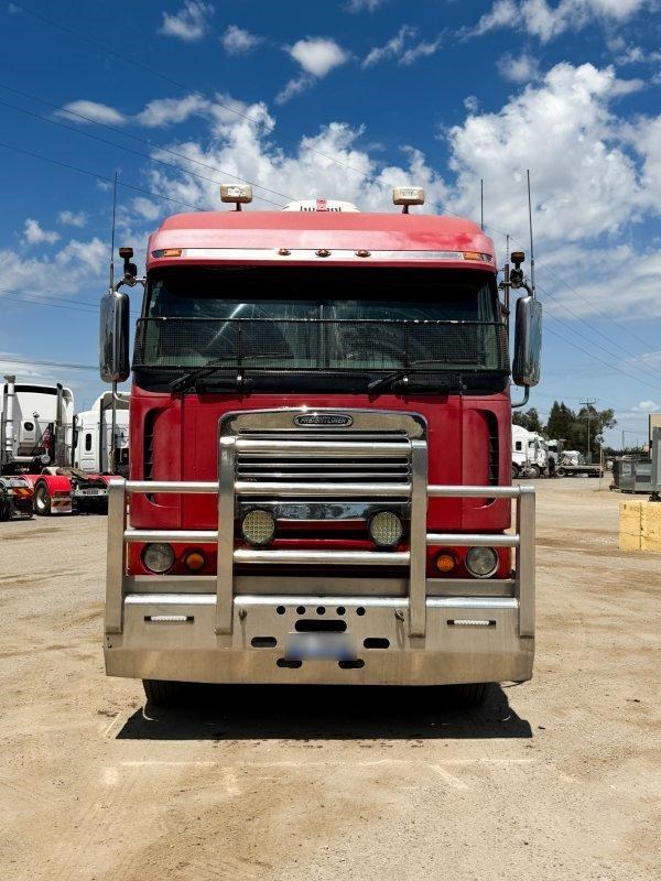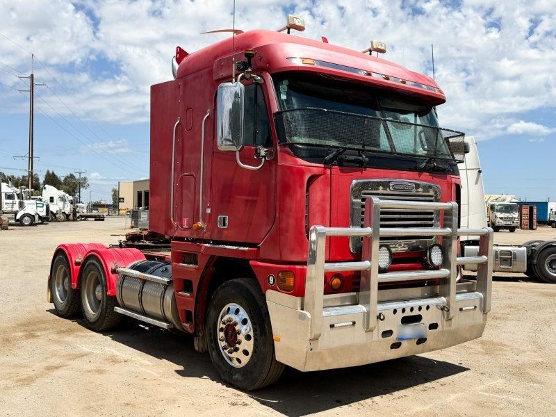 2007 Freightliner Argosy 6x4 Prime Mover, Cummins ISX Engine, 18 Speed AutoShift (3 Pedal), Meritor Rear Axles with Cross Lock to Rear Axle on Airliner Airbag Suspension, Alloy Bull Bar with LED Spot Lights and Tow Pin Provision (Pin Missing), Mesh Stone Guard, SunVisor, 10 Stud Alloy Wheels, Steps That Open, Aero Wings, Round Tanks - Split on Left, Chassis Deck Plate, Plastic Drive Guards, Greaseless Ball Race Turn Table, PTO Tipper Hydraulics, 2 x Air Horns Mounted to Roof, Bunk Cooler, Air Ride Drivers Seat, PTO Switches on Dash, UHF, Over Head Storage,