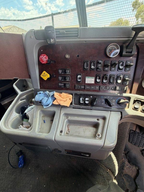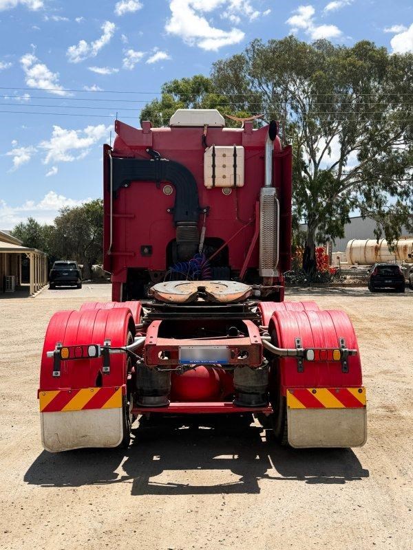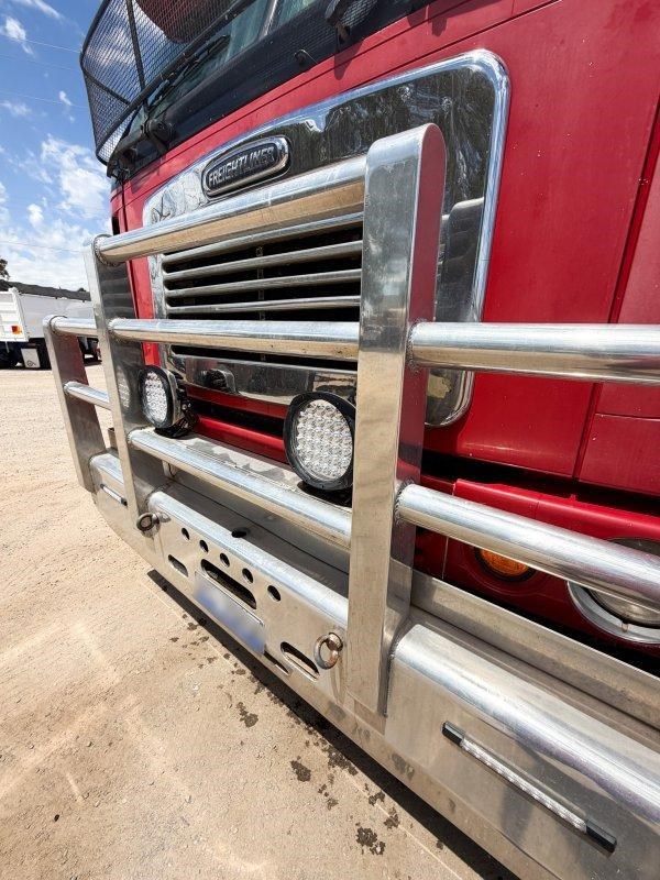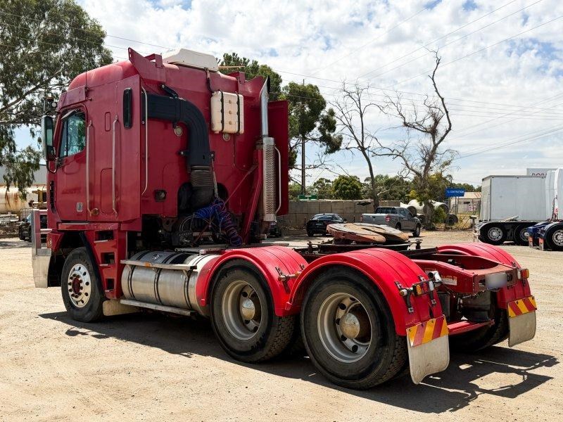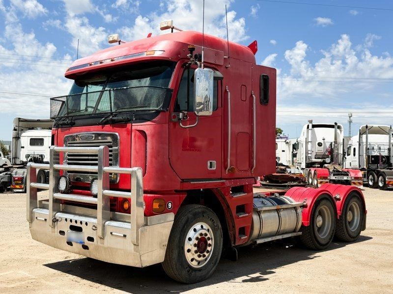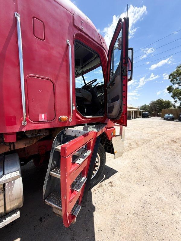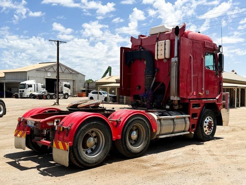 2007 Freightliner Argosy 6x4 Prime Mover, Cummins ISX Engine, 18 Speed AutoShift (3 Pedal), Meritor Rear Axles with Cross Lock to Rear Axle on Airliner Airbag Suspension, Alloy Bull Bar with LED Spot Lights and Tow Pin Provision (Pin Missing), Mesh Stone Guard, SunVisor, 10 Stud Alloy Wheels, Steps That Open, Aero Wings, Round Tanks - Split on Left, Chassis Deck Plate, Plastic Drive Guards, Greaseless Ball Race Turn Table, PTO Tipper Hydraulics, 2 x Air Horns Mounted to Roof, Bunk Cooler, Air Ride Drivers Seat, PTO Switches on Dash, UHF, Over Head Storage,