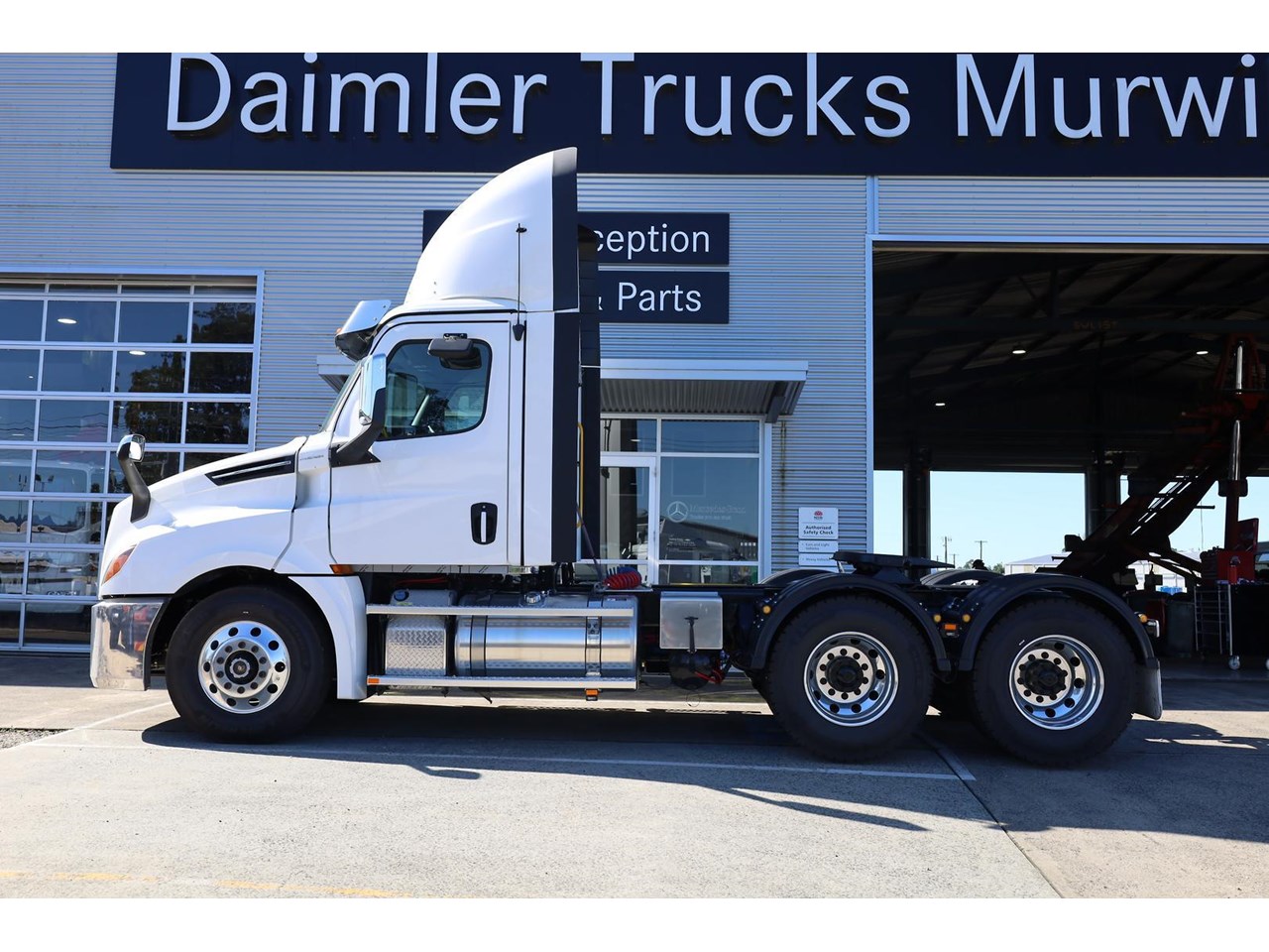 - Multimedia Cockpit, Detroit Assurance 5.0 includes Adaptive Cruise Control, Active Brake Assist, Lane Departure Warning and -- - Side Guard Assist. Black plastic guards, Jost turntable, Driver and passenger Air suspension seats, Bluetooth, walk plate and air and electrics to rear.