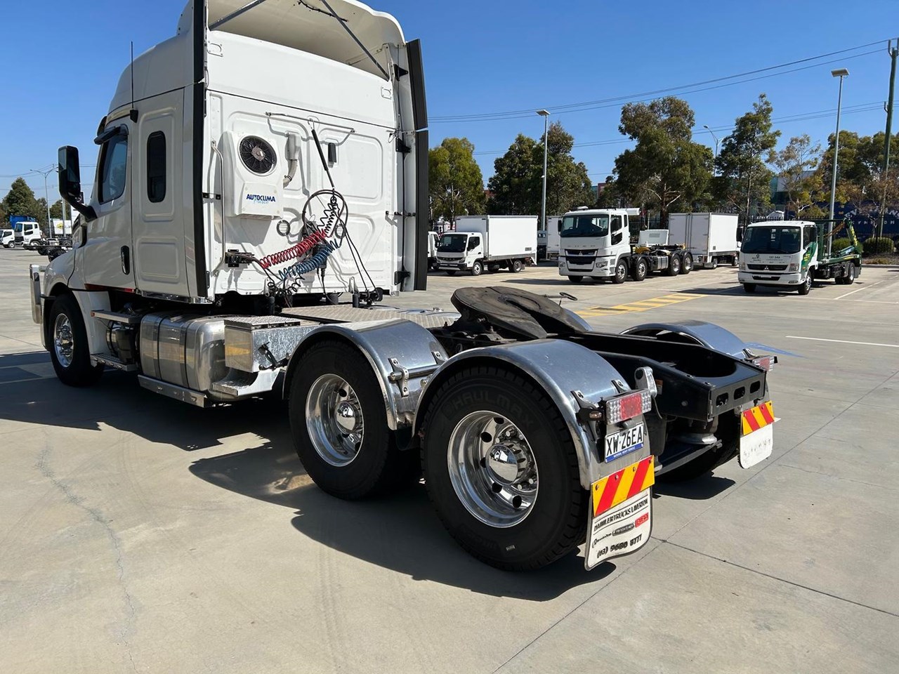 This truck is fitted with the Detroit Assurance safety equipment which includes Active braking assist, Lane departure warning, Automatic Windscreen wipers & Adaptive cruise control. it is also fitting with a 28inch TV and Autoclima Fresco electric bunk cooler (this bunk cooler is fitted with extra batteries so that it is not drawing directly from the truck batteries).