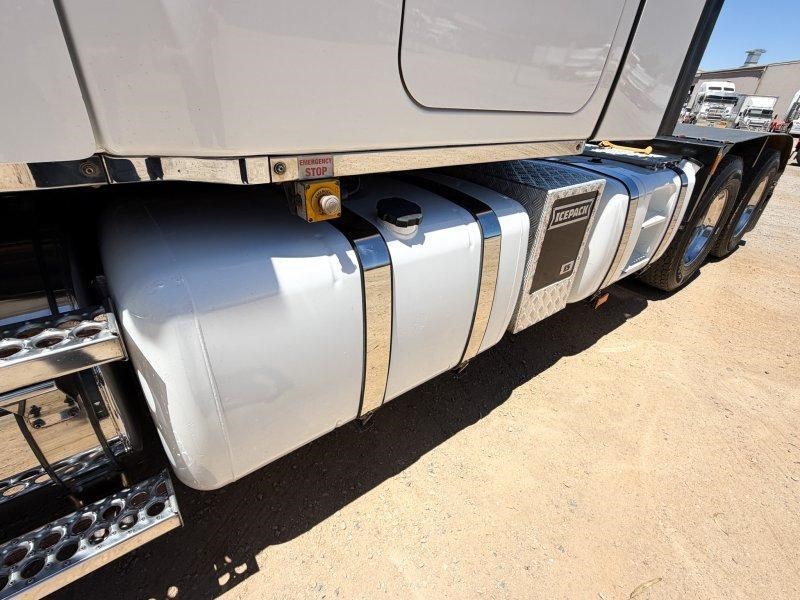 2021 Freightliner Cascadia 126 6x4 Prime Mover, Detroit DD16 Engine @ 600Hp, DT12-2050 12 Speed AMT Transmission (2 Pedal), Dana D54-190P Rear Axles @ 4.1 with Cross Locks to Both Axles on Neway Air Bag Suspension, Alloy Bull Bar with LED Spot Lights/Road Train Signs and Tow Pin, Stainless Steel Drop Visor, Aero Kit with Wings, 10 Stud Alloy Wheels, 4 x Square Diesel Tanks, Ice Pack, Twin Exhaust Stacks Behind Cab, Tool Box and Hand Wash Facility Behind Cab, Chassis Deck Plate, Rubber Pull Over Guards, Fixed K-Hitch QRTT, Yard Dolly Pull to Rear Cross Member, Battery Isolator, Air Ride Drivers Seat, Microwave, TV Mount Only, Single Bed,