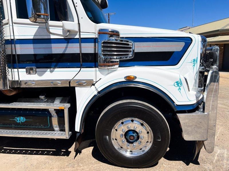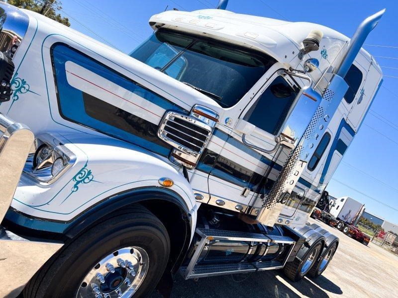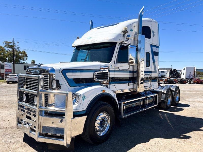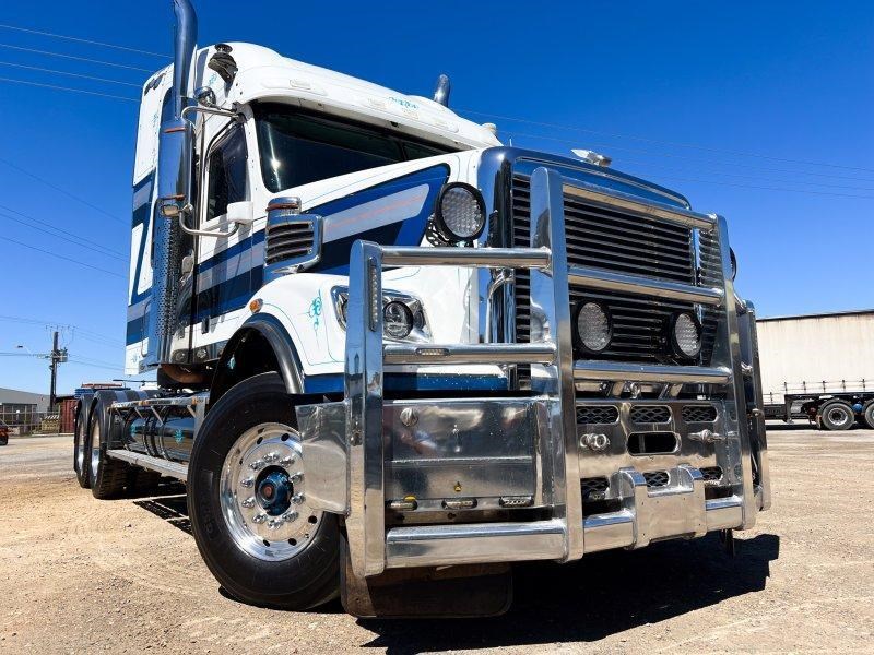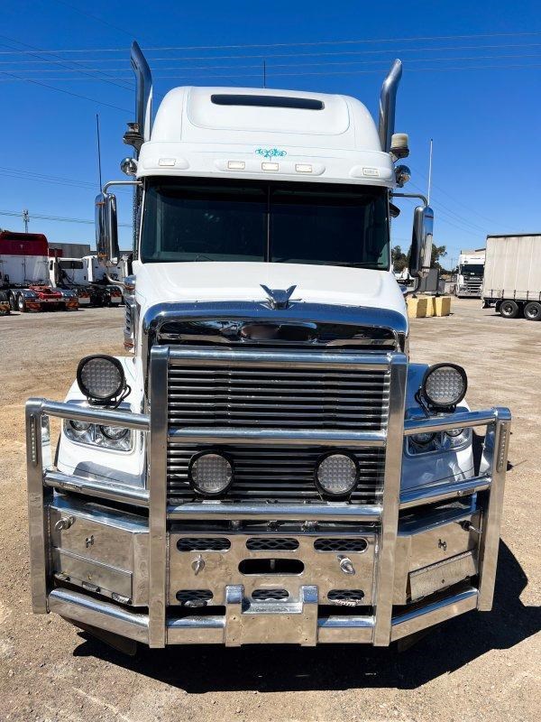 2013 Freightliner Coronado 122 6x4 prime mover,560 hp Detroit DD15 Eng-HAS DONE 149800 KMS ON REMAN ENG-18 spd trans-RTLO20918B-Meritor RT52-185 rear axles @ 4.56 on Neway air bag susp,Alloy wheels and FUPS bull bar,Super singles on steer,58" high roof intergreated sleeper with double bunks and Icepack 2000-S air con,2" fixed QRTT,Diff and rear axle x lock,Rad/cd,UHF,Draw fridge,Dolly pull in rear.140 ton rated with engine warranty until 29.07.26.