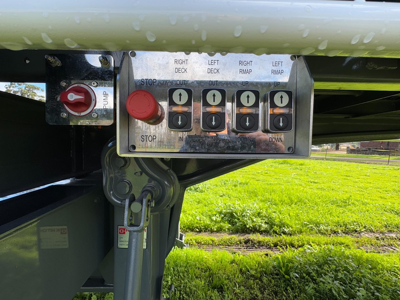 The all New FreightWest Next Generation Heavy Duty Triaxle Drop deck Widener trailer. Widens to 3.5m. These trailers have the highest quality finishes with all the extras such as bifold ramps, sliding top deck ramps, with cordless remote, 9 tonne electric recovery winch,3 way container pins with pedestals, multiple tie down points, road train bracket, 19.5 inch polished Alloy wheels, K hitch axles on KT250 airbag suspension with dump valve, WABCO EBS braking system, 4x tool boxes with stainless doors and water tank. Must see these trailers to