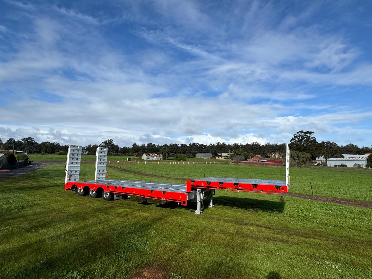 The all New FreightWest Next Generation Heavy Duty Triaxle Dropdeck Widener trailer.