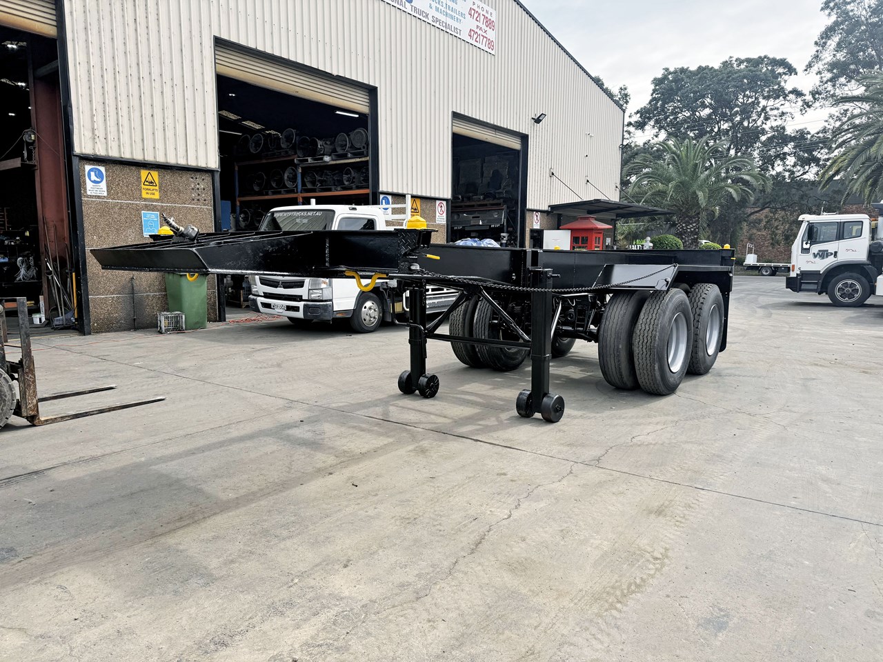 20' with container pins, tubeless wheels and tyres, freshly painted and sold as is.