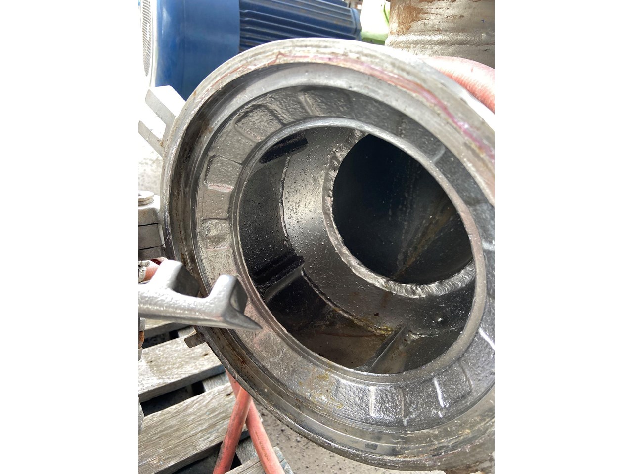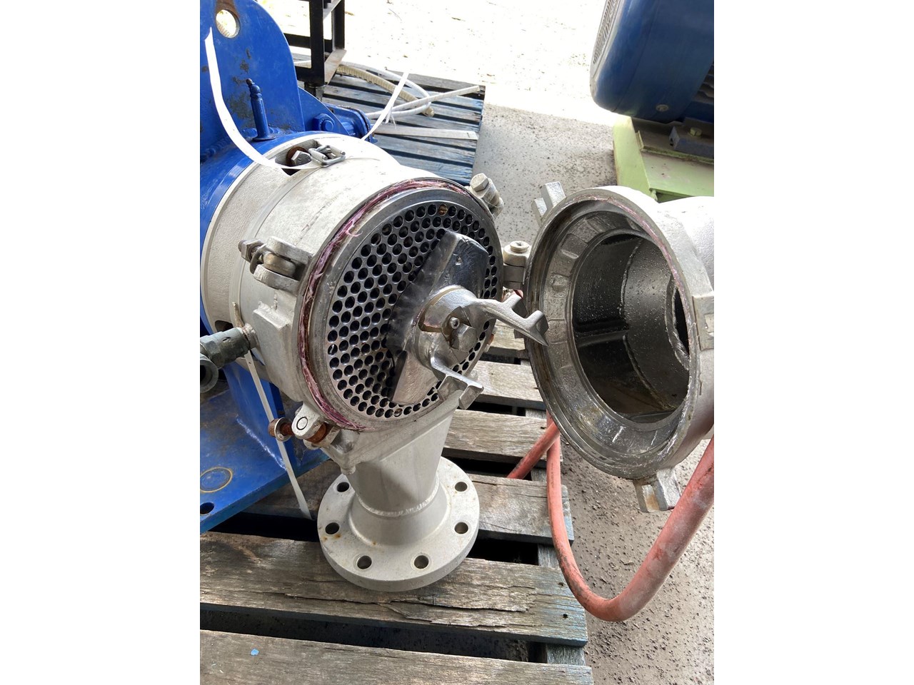 The FrymaKoruma perforated disc mill is used for grinding, pulping and mashing of lumpy products, eg fruit, vegetables, paper, leather waste, meat, fish, pet food. St/Steel Plate with 10mm holes and cutting head. 150mm inlet 150mm x 100mm outlet, 30kw, 2900rpm motor, 415V. All st/steel contact parts.