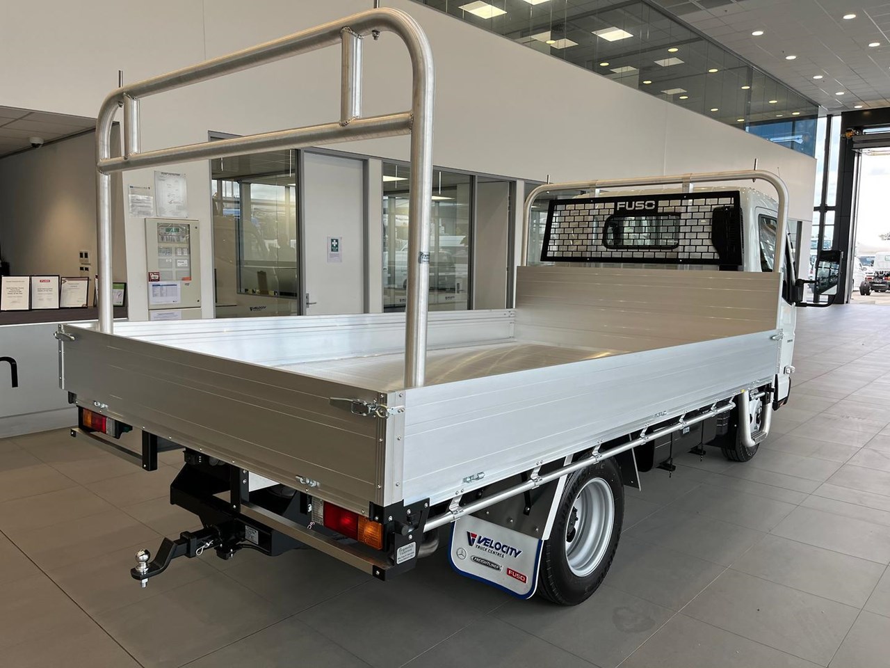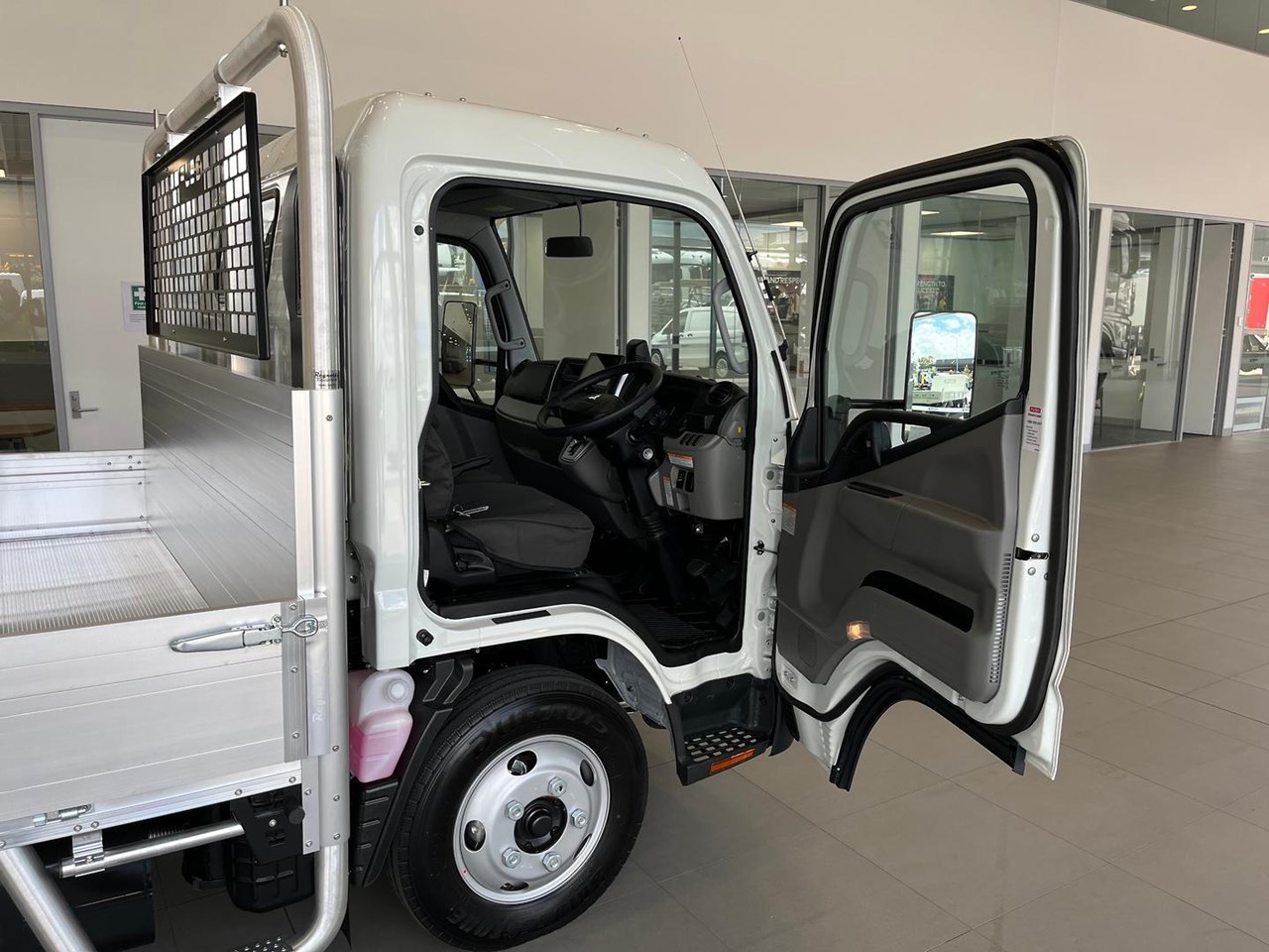 2024 CANTER 515 CITY CAB 4X2 SWB 6SP. DUONIC TRANSMISSION FITTED WITH 3600mm X 2100mm X 300mm (H) DROPSIDES, REAR REMOVABLE LADDER RACK AND 3.5T RATED TOWBAR WITH 50mm BALL, CANVAS SEAT COVERS, RUBBER FLOOR MATS. - TARE WEIGHT 2,300KG.