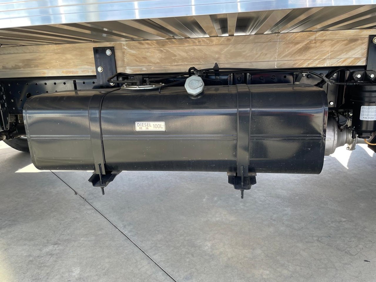 3mm steel chequer plate floor over rectangular hollow section cross bearers and 100 x 50 main runners.