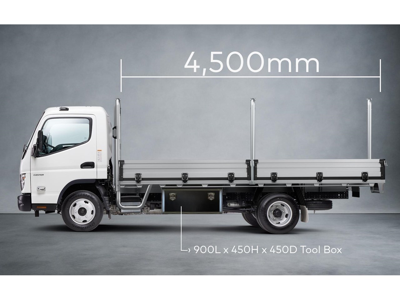 Step up to Fuso's safest Canter ever, now available with a factory-installed 4.5 m aluminium tray and removable ladder racks - engineered to go straight to work.
