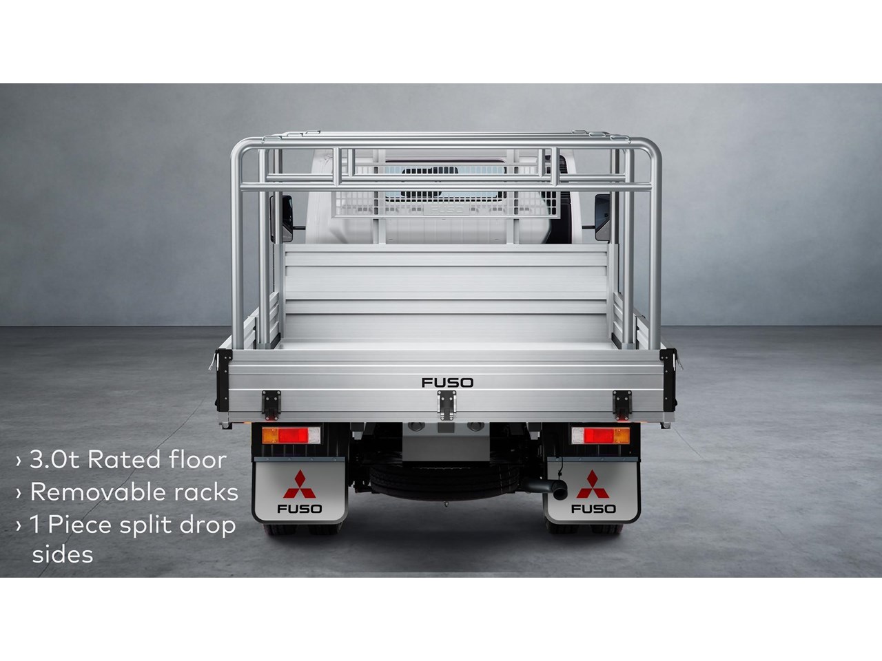 Optimised for urban performance, drop sides, middle racks and rear racks are removable at will-go from ladder-carrier to flatbed in minutes. All with the reliable backbone of Fuso's wide-cab