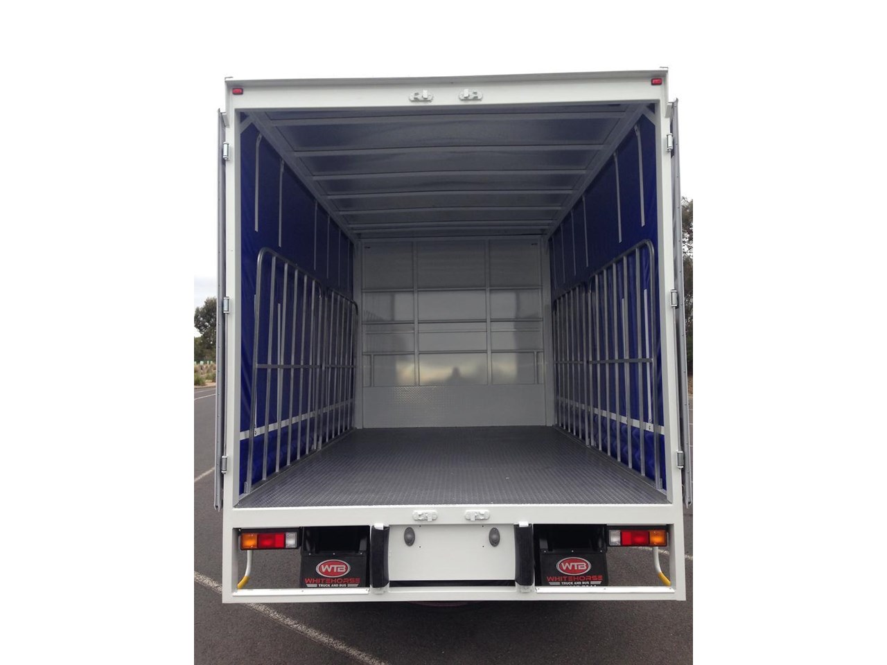 This 2024 Fuso Canter 815 Wide Cab AMT ready to go with a 6 Pallet Curtain Sider is truly unbeatable, with its class-leading payload and a quality built local body, making it a great choice for those in need of a reliable truck. It boasts a low tare weight and a 6-speed AMT transmission.