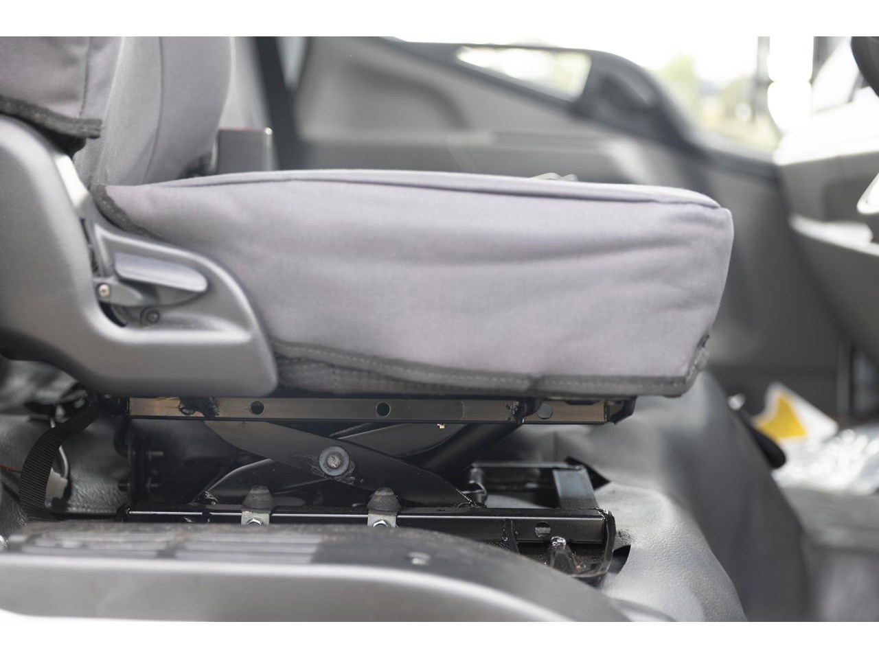 - Suspended driver seat with left hand folding arm rest, lumber support and weight adjustment (on wide cab models only).