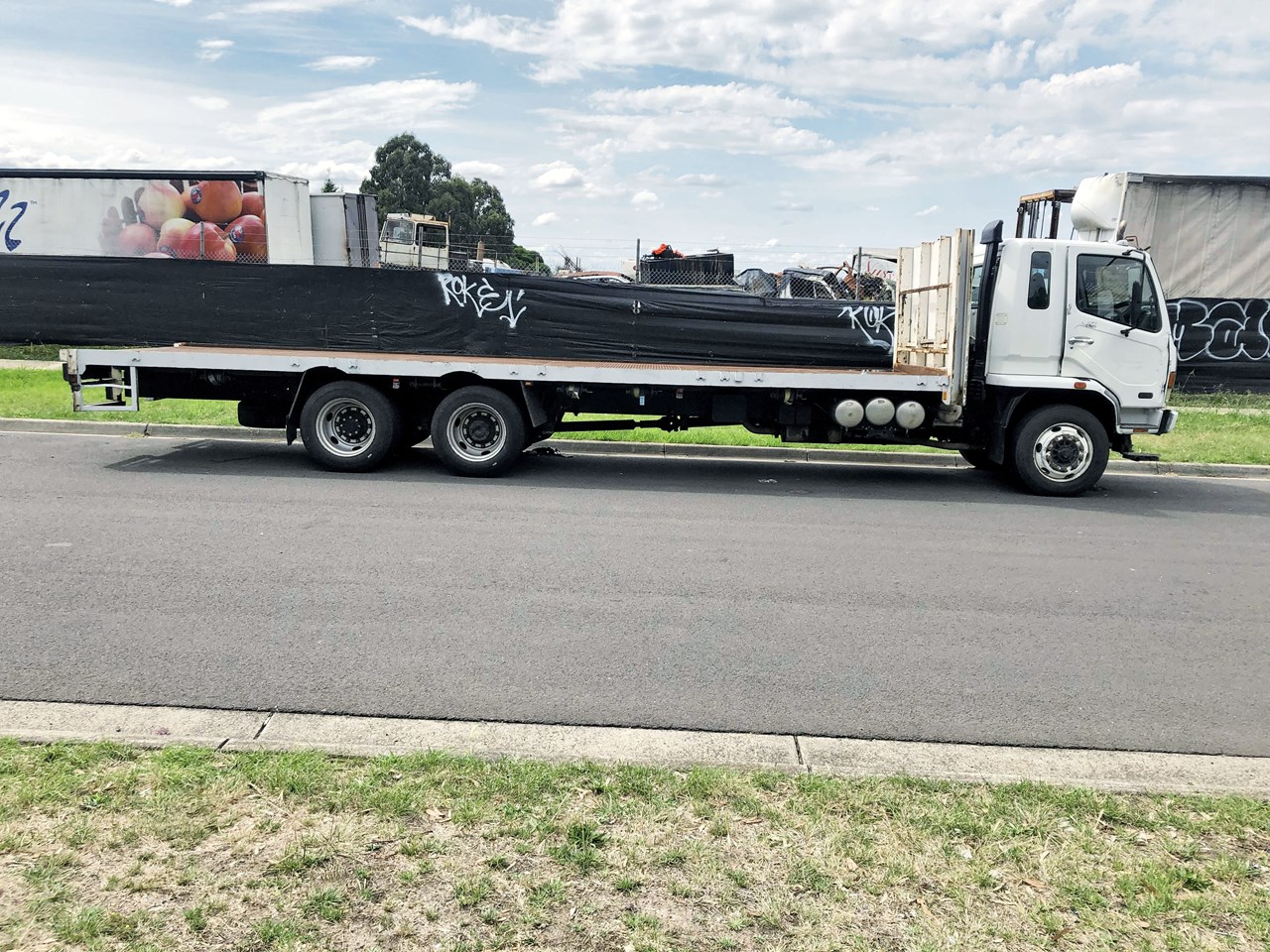 fuso fighter14, 2006 tray truck 14 pallet 12 ton carrying capacity, 24000 gvm, 28000 gcm, a/c, airbags, turbo, cruse control, lazy axel, 2 month rego, 390000 km, $25000 plus gst as it.
