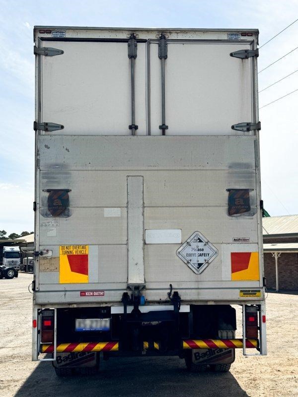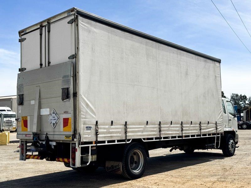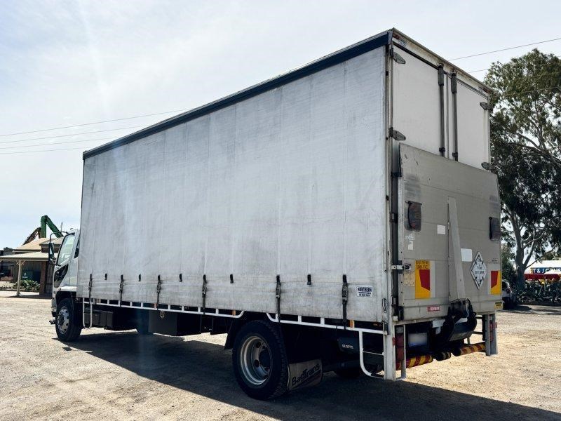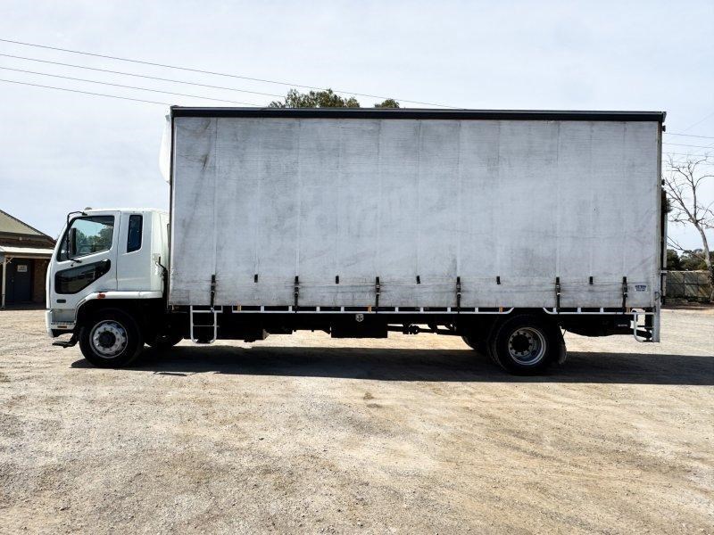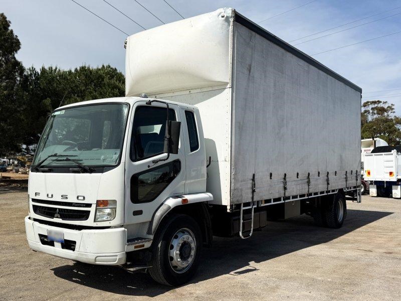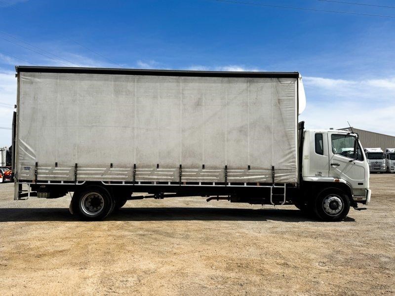 2008 Fuso Fighter 1627 4x2 Curtain Side Truck, 270Hp Fuso Engine, 6 Speed Syncro Transmission, Fuso Rear Axle on Air Bag Suspension, 10 Stud Steel Wheels, 12 Pallet Curtain Side Body, Nose Cone, Barn Doors to Rear, Cantilever Tailgate Closing up Behind the Doors, Under Body Tool Box, Air Ride Drivers Seat, Radio CD Player, A/C, Power Steering, Electric Windows,