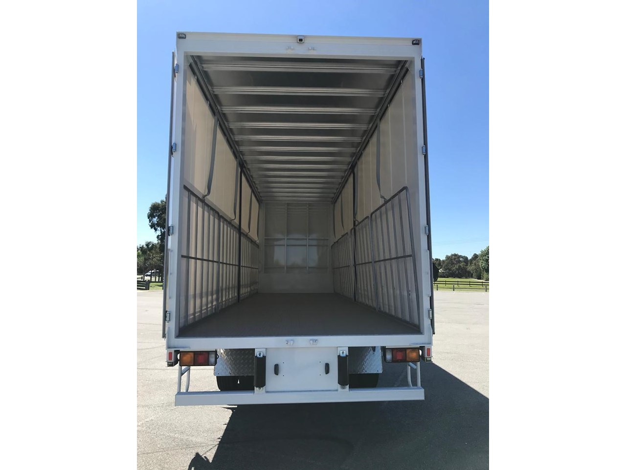 The 14 Pallet Curtainsider is built by one of our local builders, Elite Truck Bodies. The 14 pallet curtain sider is 9000mm long x 2490mm wide with a 2700mm side load. 5mm steel checker plate floor, STD Buckle curtains, 1500mm high gates, 7x load binders, front and rear tensioners and a Nose cone.