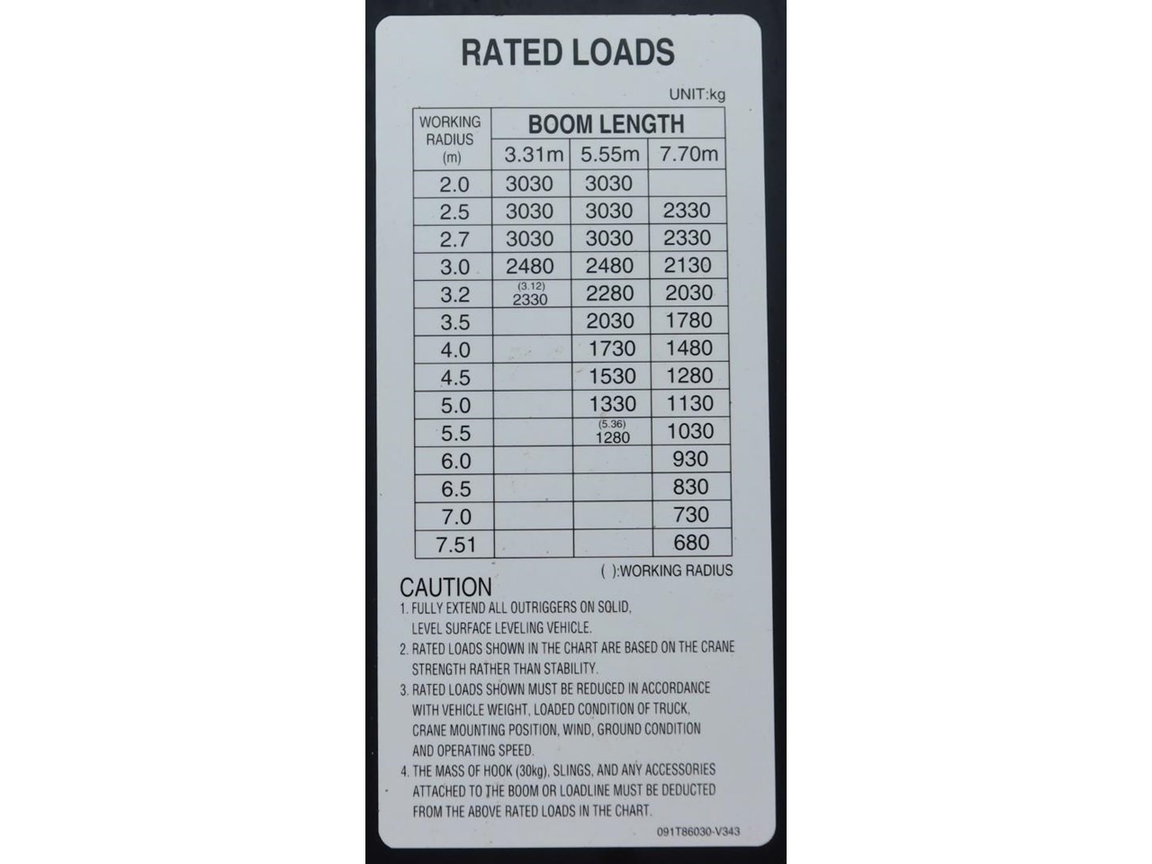 UNIC URW343 E STIFF BOOM CRANE SPECS;