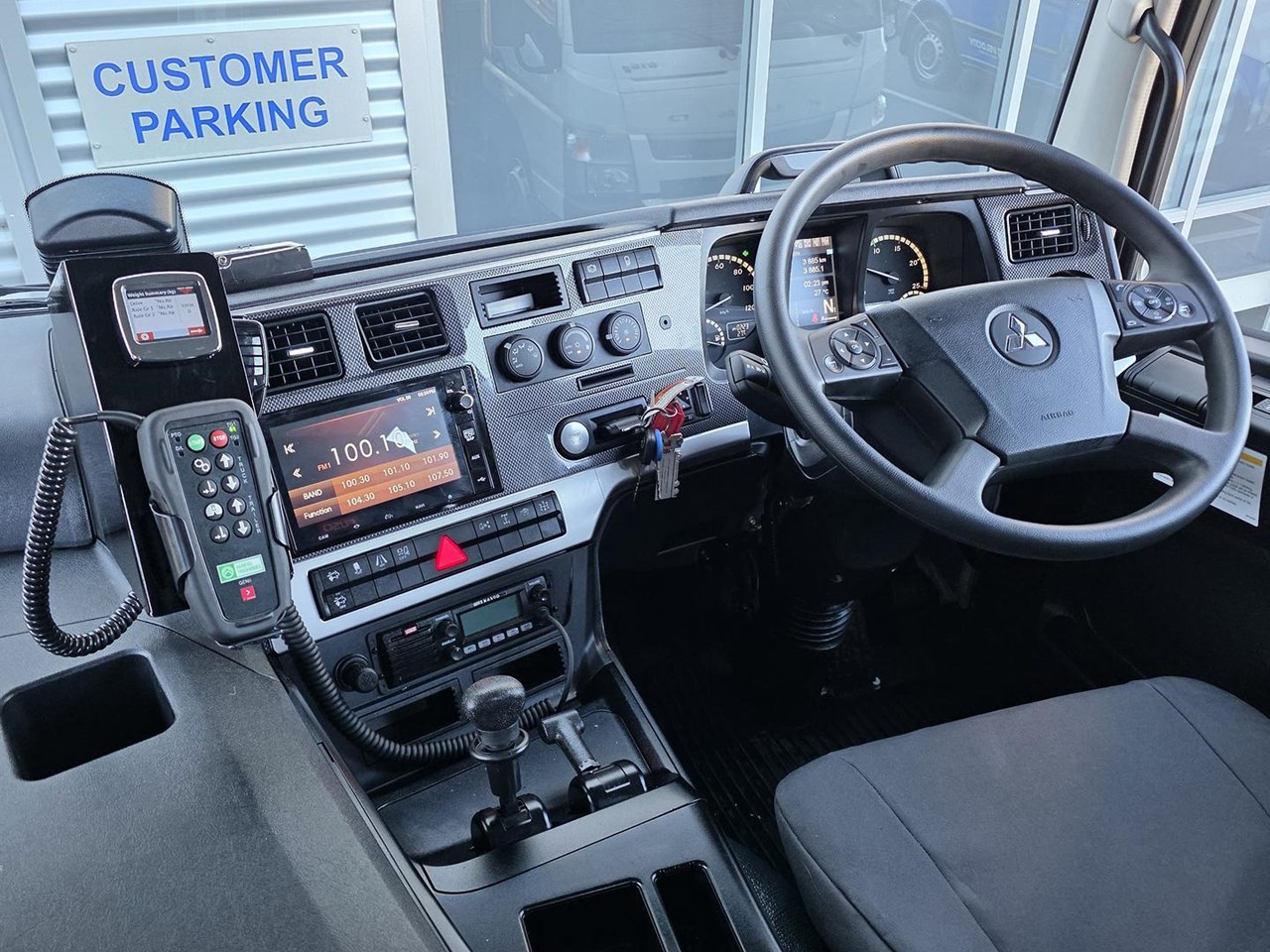 - POWDER COATED ROOF BAR WITH 2X AMBER LED BECAONS ON GENUINE FUSO DASH SWITCH