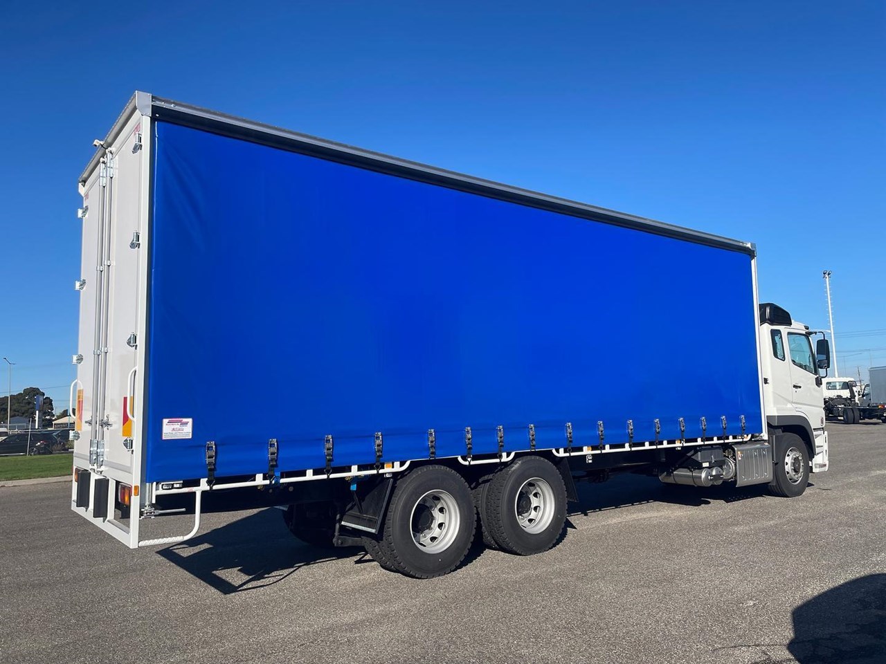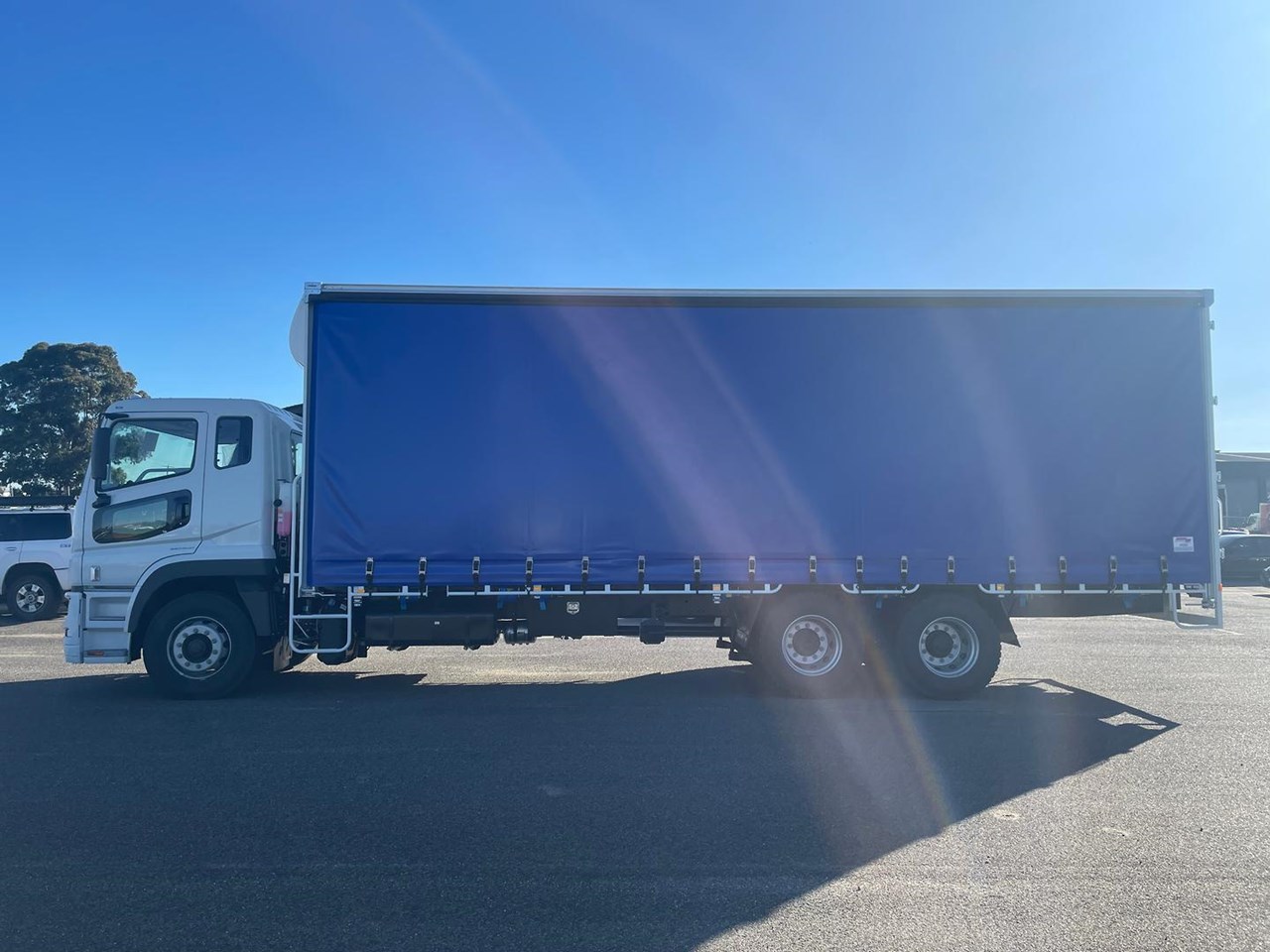 Need a reliable and versatile truck for your logistics business? The brand new Fuso SHOGUN 360 - 14 Pallet Curtainsider is designed for maximum efficiency and safety on the road. With advanced features and robust performance, this truck is ready to meet your demanding transport needs.