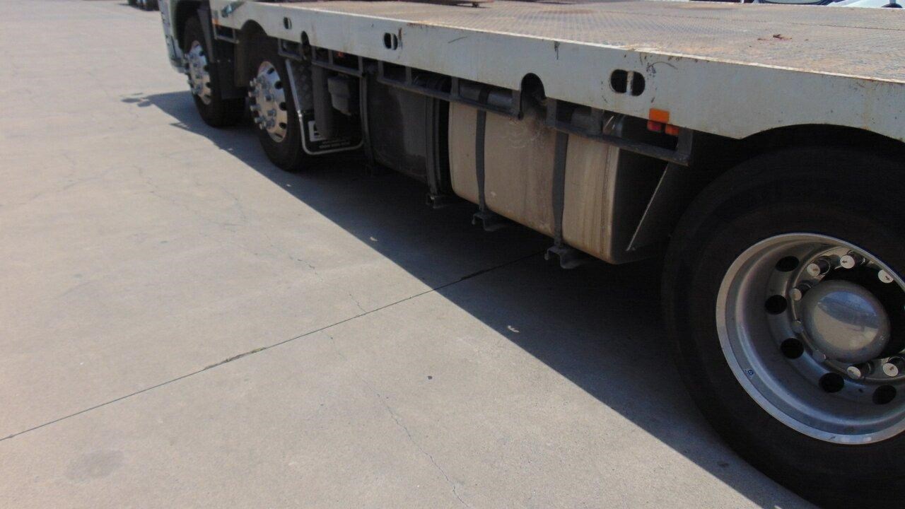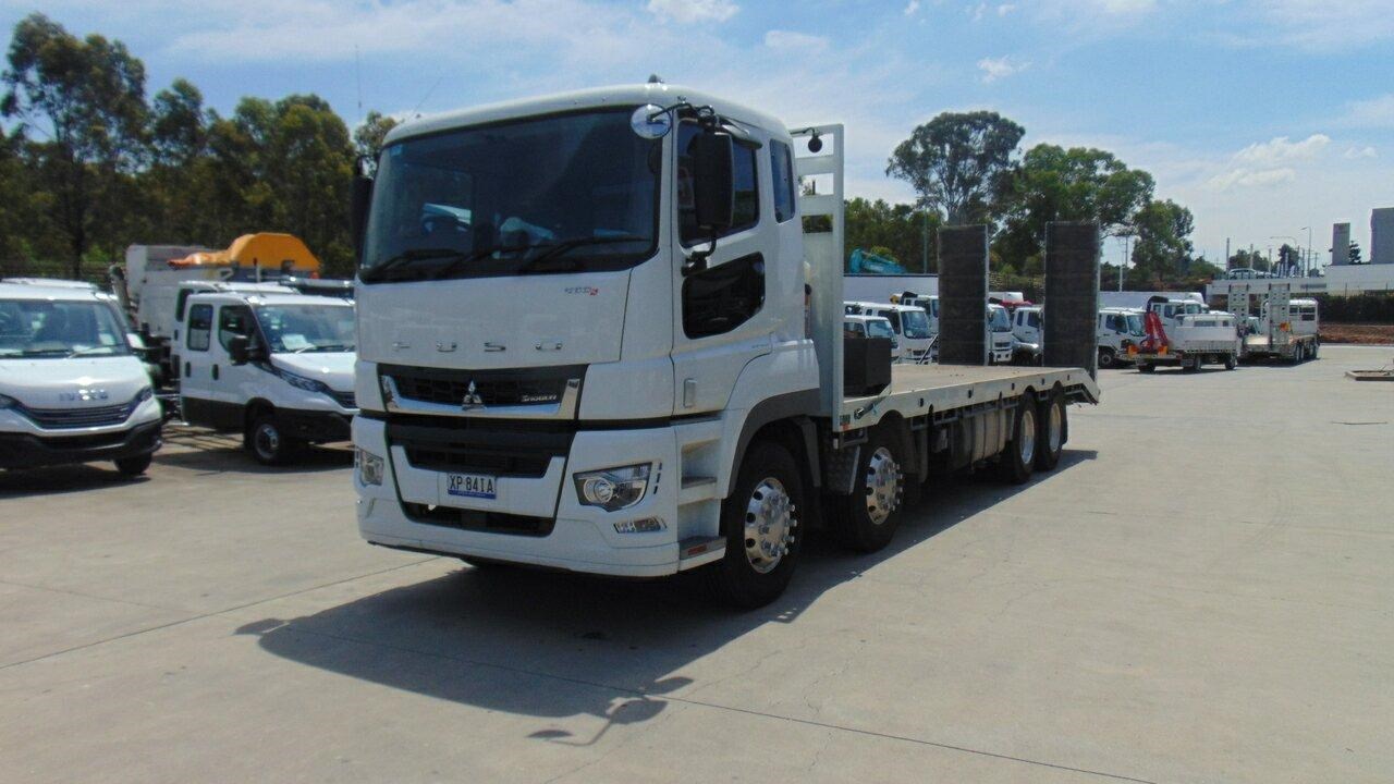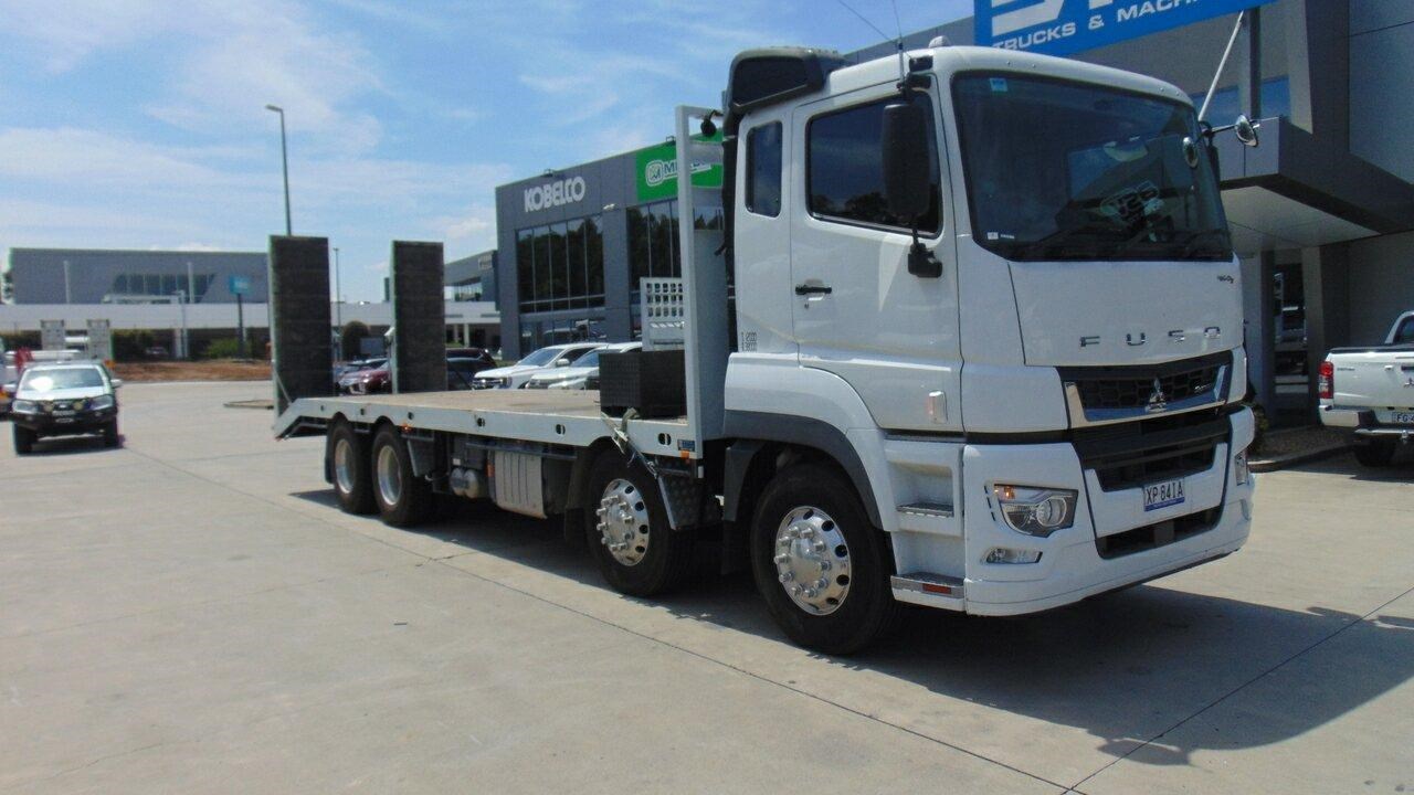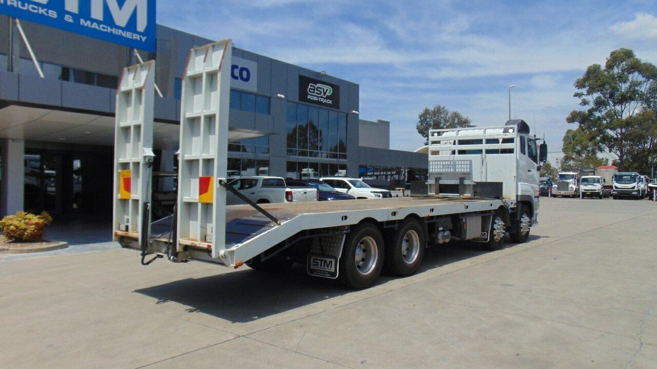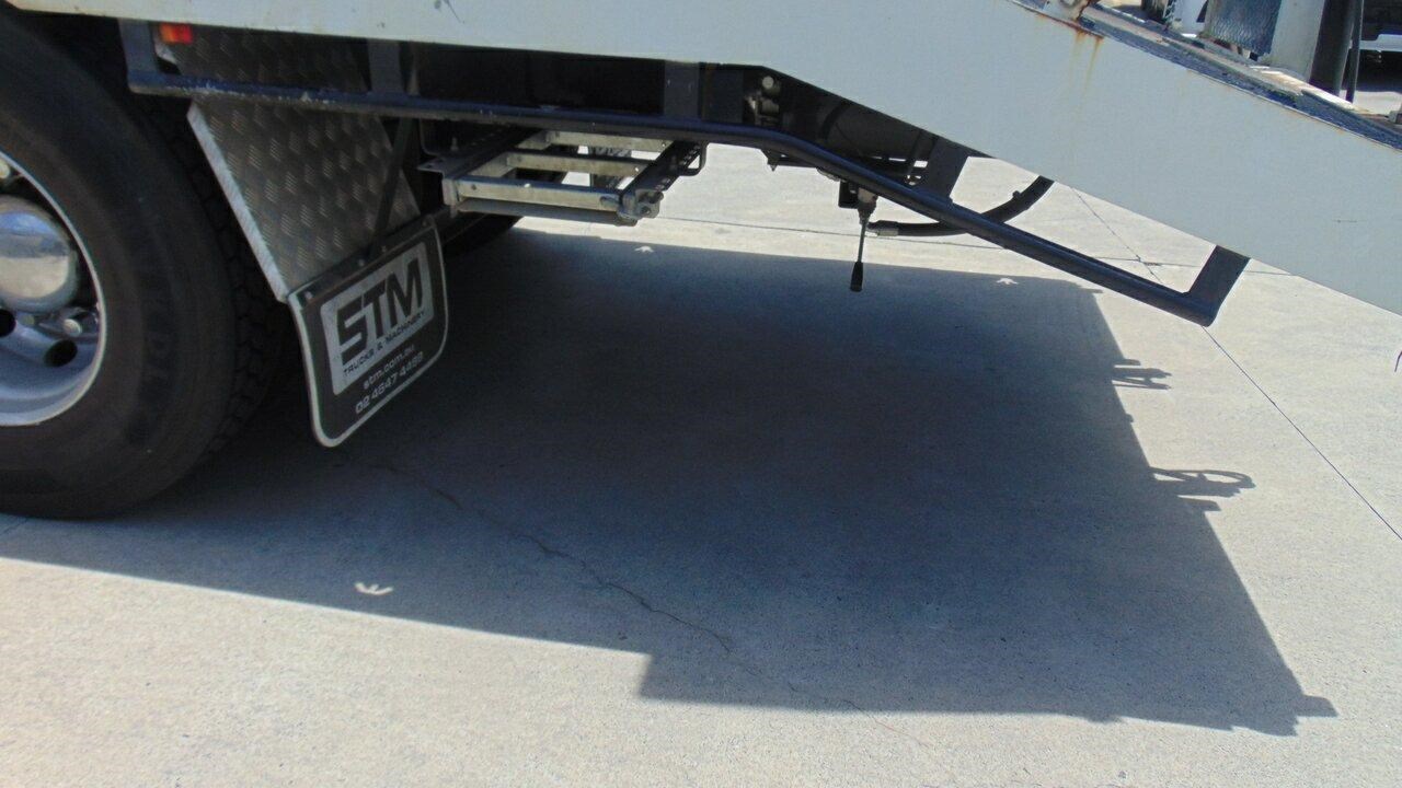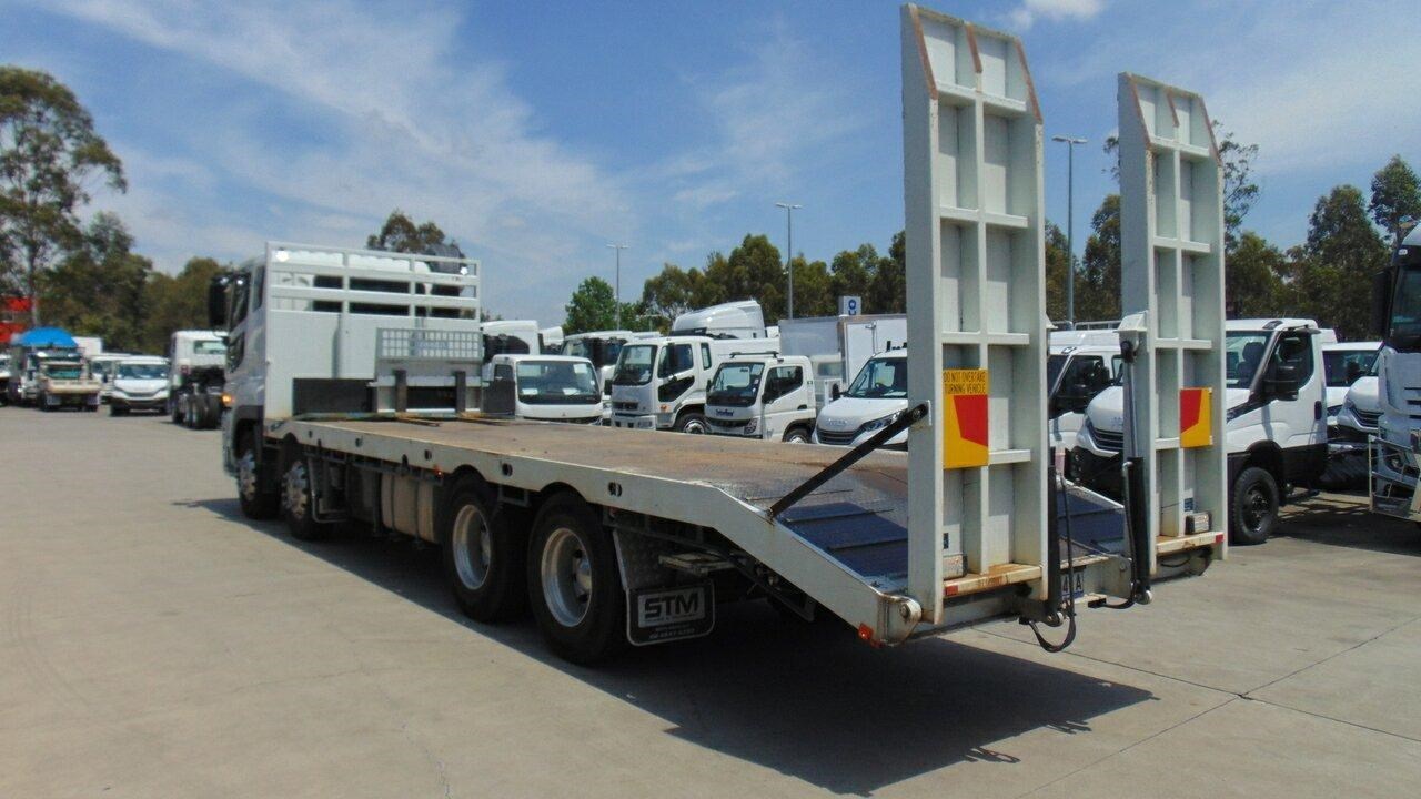 2023 Fuso FS76 Shogun Beavertail 8x4 - Presents as new, very low kilometres, 8x4 Shogun 460 Beavertail, Kimba body, Hydraulic ramps, 14 tie down points, Tier one civil specs, GVM is 30,800 and the Tare is 12,000. Extra fuel tank with hose and reel for refuelling. LED Work lights, LED Beacon, UHF Radio, Spotter mirrors, Handbrake alarm, Trucktronix weight gauges, Auger holders, Come and have an inspection of this great truck. Call the used truck sales team.