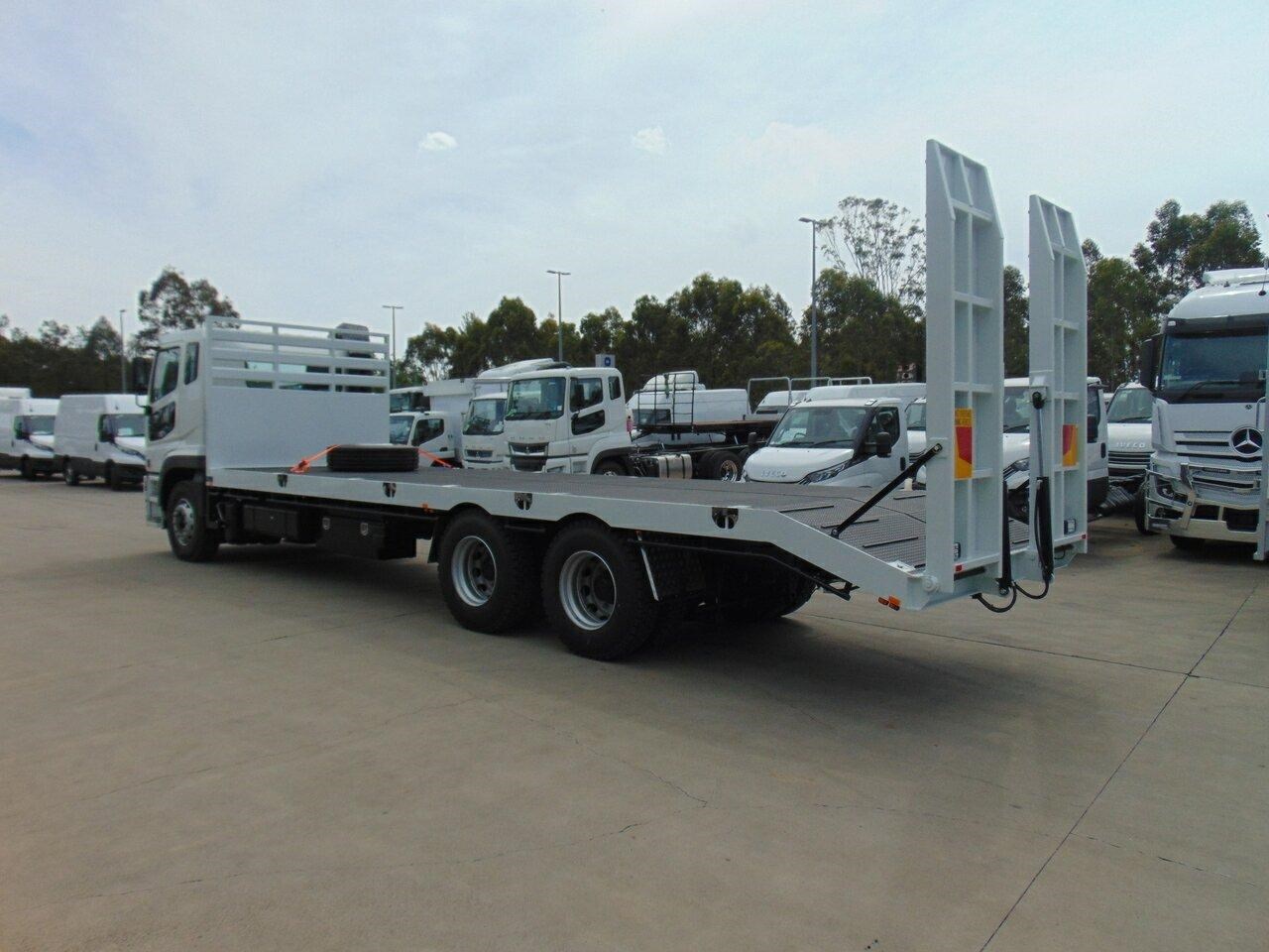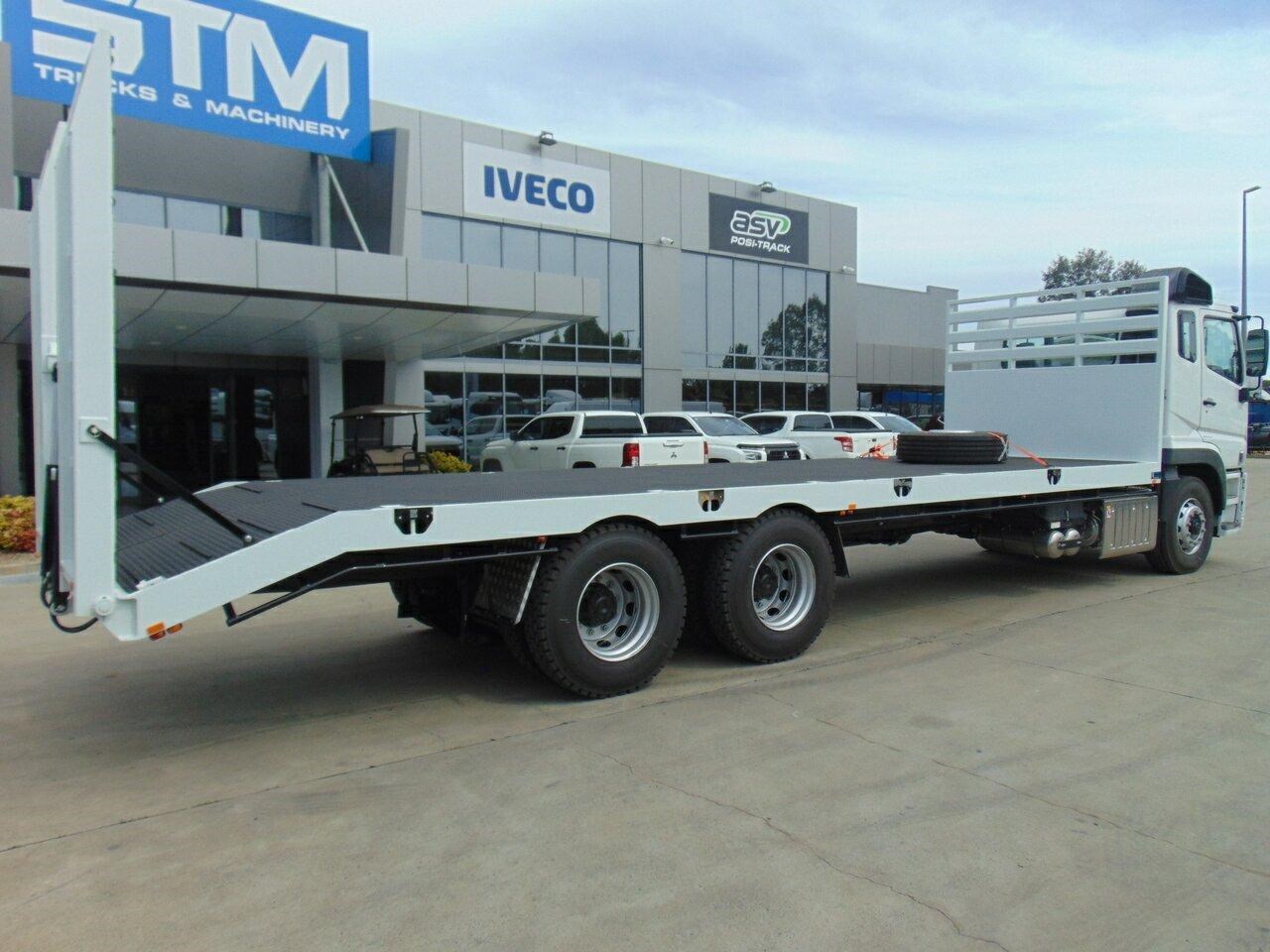 2024 Fuso 360 Shogun White Beavertail 7.7l 6x4 - NOTE: Plus on road costs. Brand new Beavertail, 8,000mm Deck length + 1,000mm Tail 5MM Checker plate floor, 7 X Tie downs each side, Hydraulic Ramps 2.5m long, 24V Power pack fitted, 1200MM Black Powdercoated Toolbox, - 5X Clearance lights + 2X Bliners per side, 200MM Flat sides. Call the NEW Fuso sales team to discuss. NOTE: Must be paid for and delivered by the 31st December 2025.