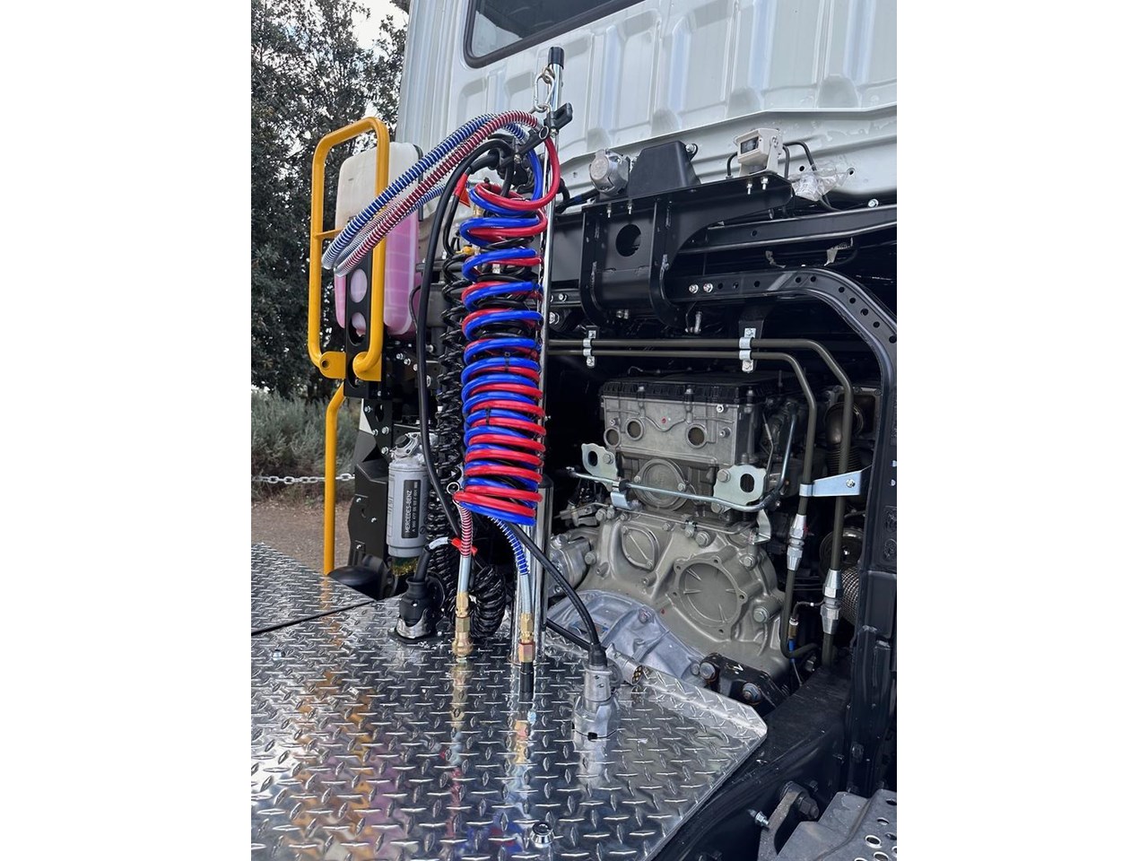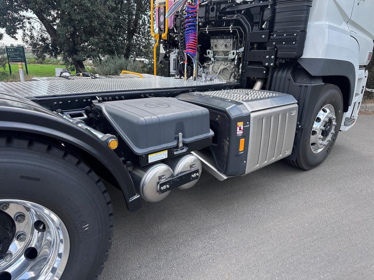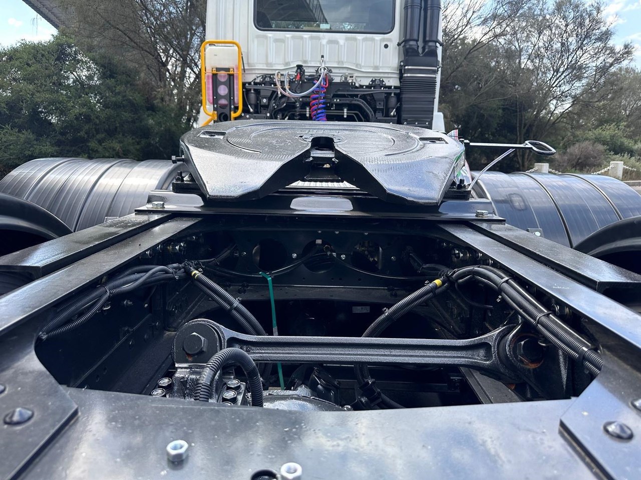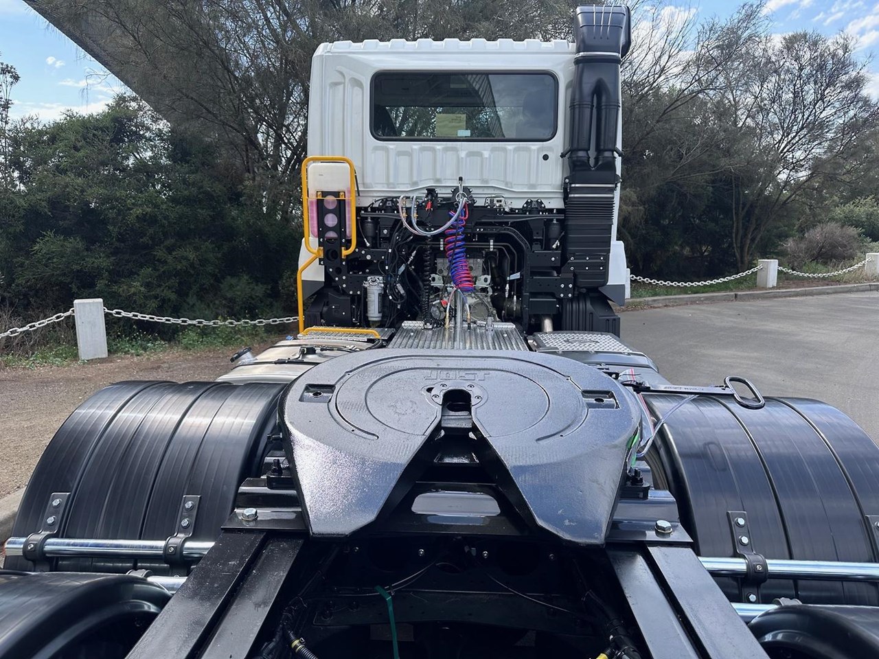 The Prime Mover set up is done in-house at an Authorised Fuso Dealer. The Build up includes a Jost Fixed Turn Table, Plastic rear guards, Pogo stick with Air brake fittings and ABS and Light control connectors. Aluminum walk plate OHS safe steps to gain access to the chassis.