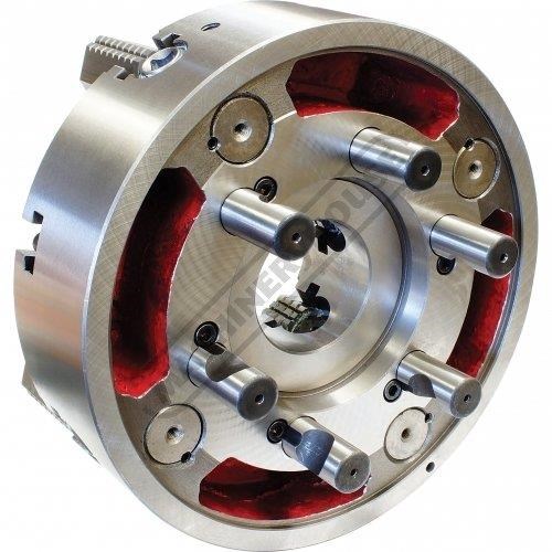 The ``P`` series chucks are to German standards and feature jaws that are individually adjustable, allowing firm gripping of odd shaped items. The semi steel chuck has jaws manufactured from hardened high quality alloy steel. Thrust bearings and operating screws made of case hardened steel.
